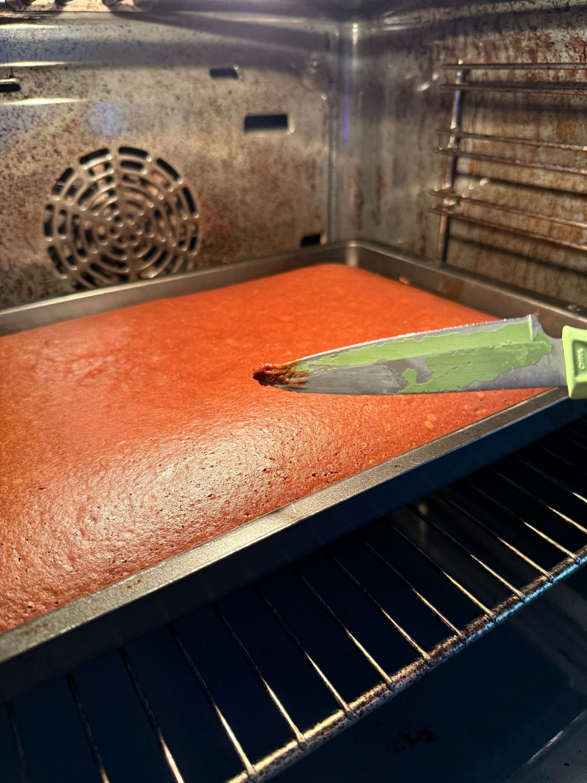 Im vorgeheizten Backofen mittig, ca. 25 Minuten backen. Beobachten Sie den Teig und führen Sie nach ca. 20 Minuten eine Stichprobe mit einer Nadel oder Messer durch. Wenn der Teig noch wenig klebt, kann er aus dem Backofen genommen werden.