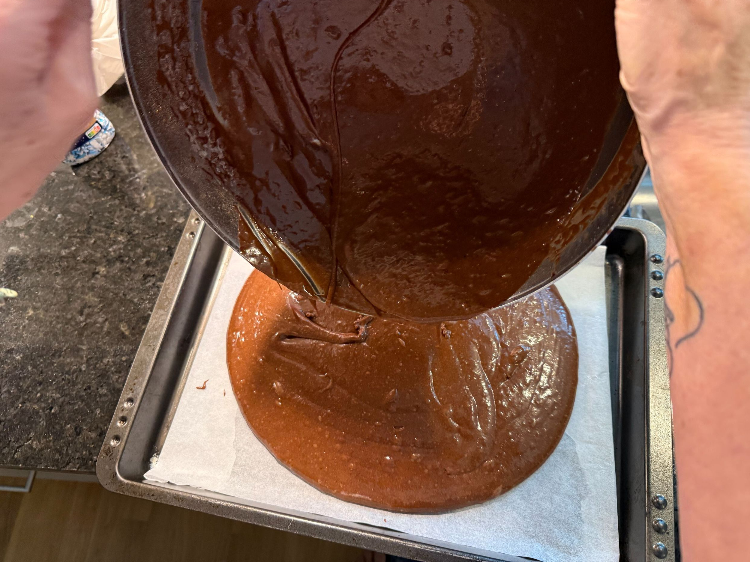 Den Lebkuchen in der Form lassen & Glasur verteilen. Auskühlen lassen.