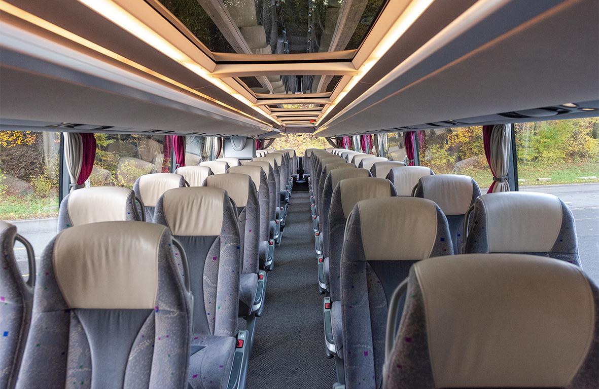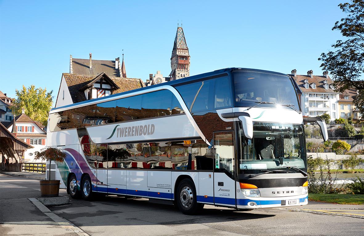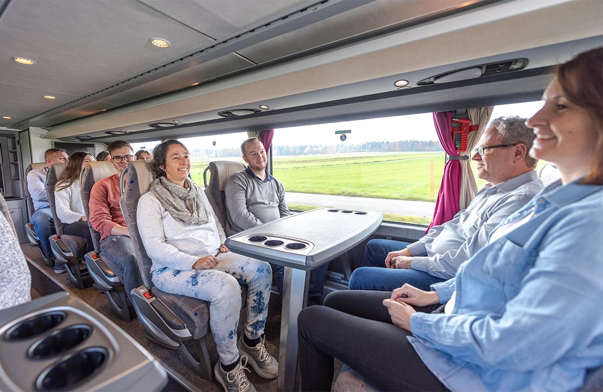 Die Ausstattung unserer modernen Doppelstock-Reisebusse entspricht dem Standard der Busse in der Komfortklasse mit 4er-Bestuhlung und einem erstklassigen Sitzabstand von 84 Zentimetern. Das Fahren im oberen Stockwerk ist für Gross und Klein immer wieder ein besonderes Erlebnis.