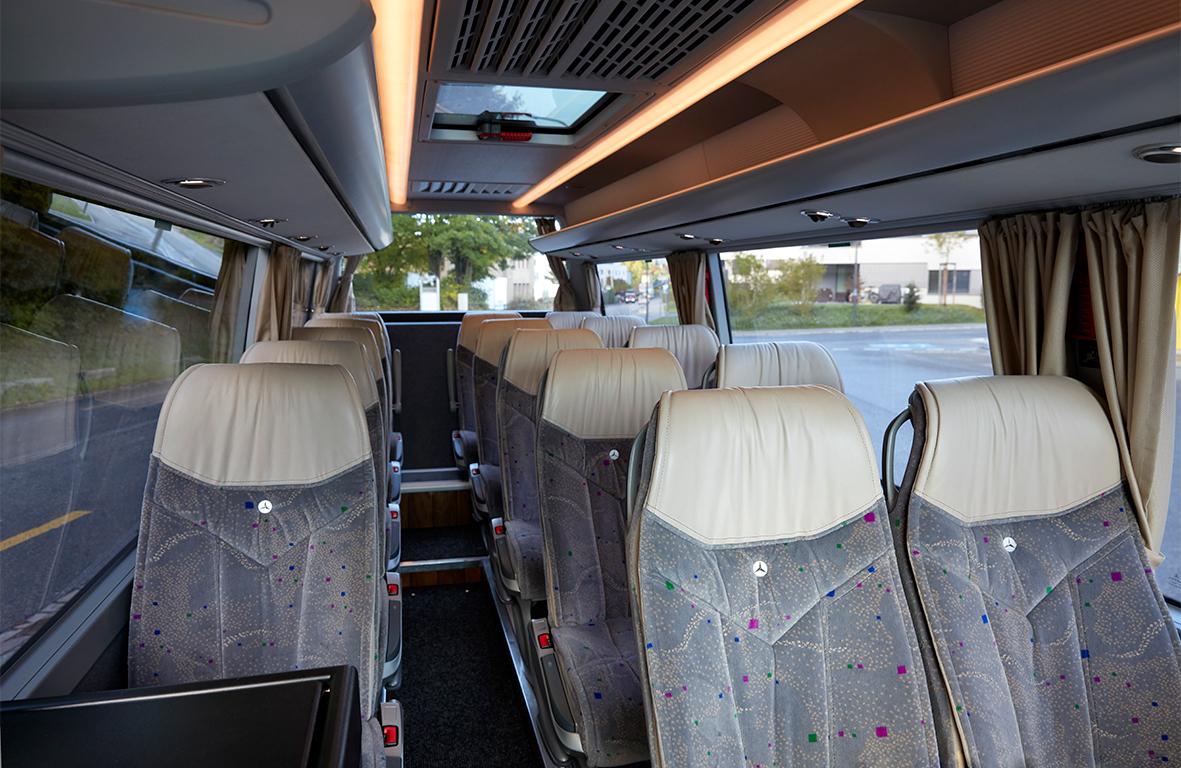 Mit 15 bis 16 Sitzplätzen eignen sich Kleinbusse optimal für Transferfahrten oder nach Mass geschneiderte Firmenausflüge in kleinen Gruppen.