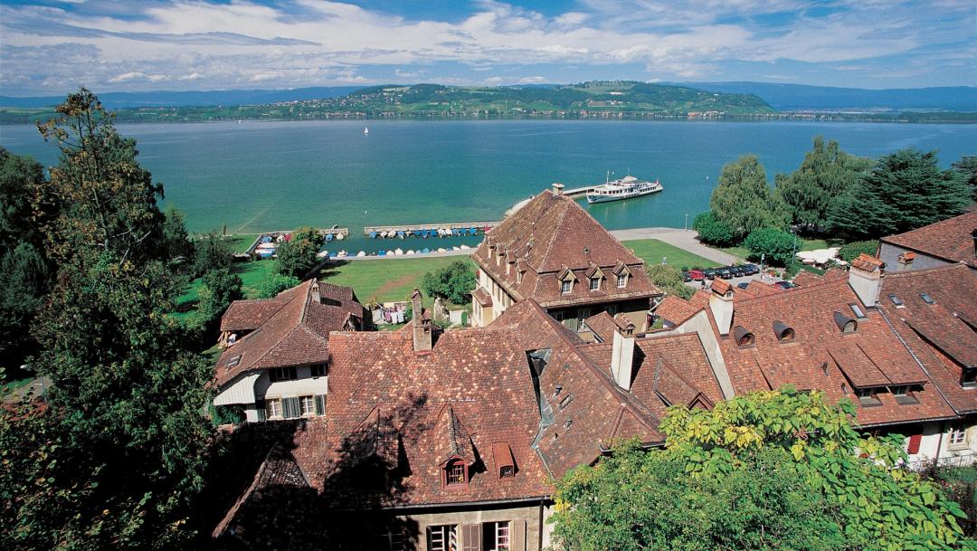 Murten / Môtier, Fribourg. Wie erlebte Karl der Kühne die Schmach der Schlacht von Murten? Das wird an den Originalschauplätzen plastisch nachvollziehbar. Aufs Mittelalter verweisen auch die Gemäuer des Benediktinerklosters Môtier. In diesen dreht sich heute alles um die perlenden Schaumweine des Hauses Mauler.