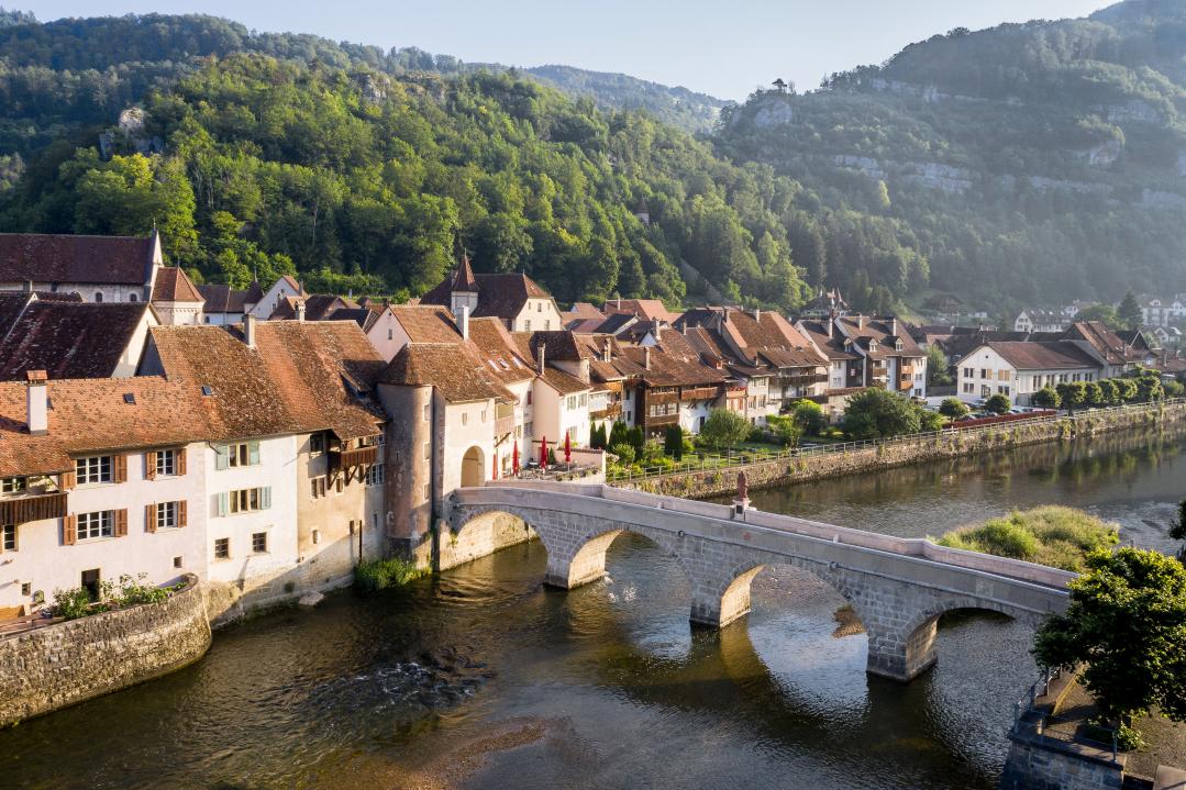 Entlang dem Doubs geht es weiter ins malerische Städtchen Saint-Ursanne. Die «Perle des Juras» besitzt ein bemerkenswertes Erbe an historischen Gebäuden. Kunstgalerien und Antiquariate säumen die Strassen des Ortes. In einem mittelalterlichen Garten gedeihen Heilkräuter, Blumen und Gemüsesorten so, wie sie einst angebaut wurden.