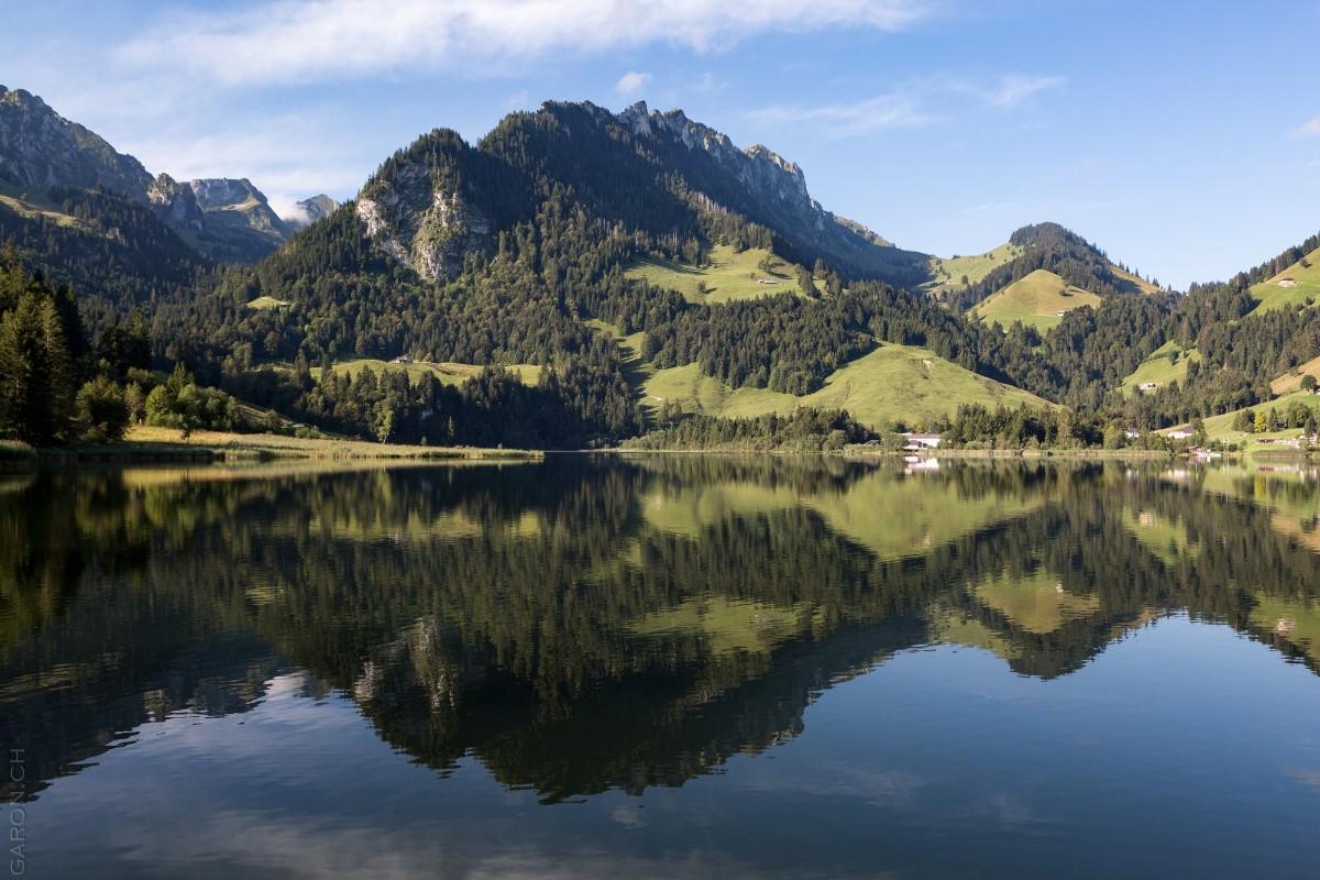 Der Riese Gargantua soll in dem kleinen See seine Füsse gewaschen haben. Deshalb ist der Schwarzsee der Legende nach so dunkel. Je nach Lichteinfall beginnt er allerdings wie ein Smaragd in verschiedenen Grüntönen zu leuchten, während sich in seinem Wasser die Berggipfel des Freiburger Sensebezirkes spiegeln. Am Gestade des Sees lädt das charmante Restaurant SchwarzseeStärn zum Mittagessen ein.