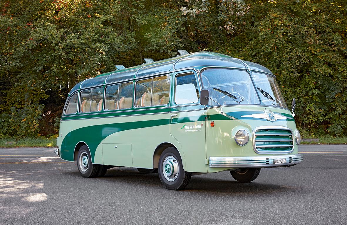 Unser Setra wurde im April 1960 als Neuwagen von der Firma Twerenbold in Verkehr gesetzt. Im Jahre 2005 ist das Fahrzeug umfassend zerlegt und restauriert worden. Das Interieur wurde dabei im damaligen Stil belassen. Wir haben uns mit der aufwendigen und kostenintensiven Restauration einen Zeitzeugen unserer Firmengeschichte erhalten.