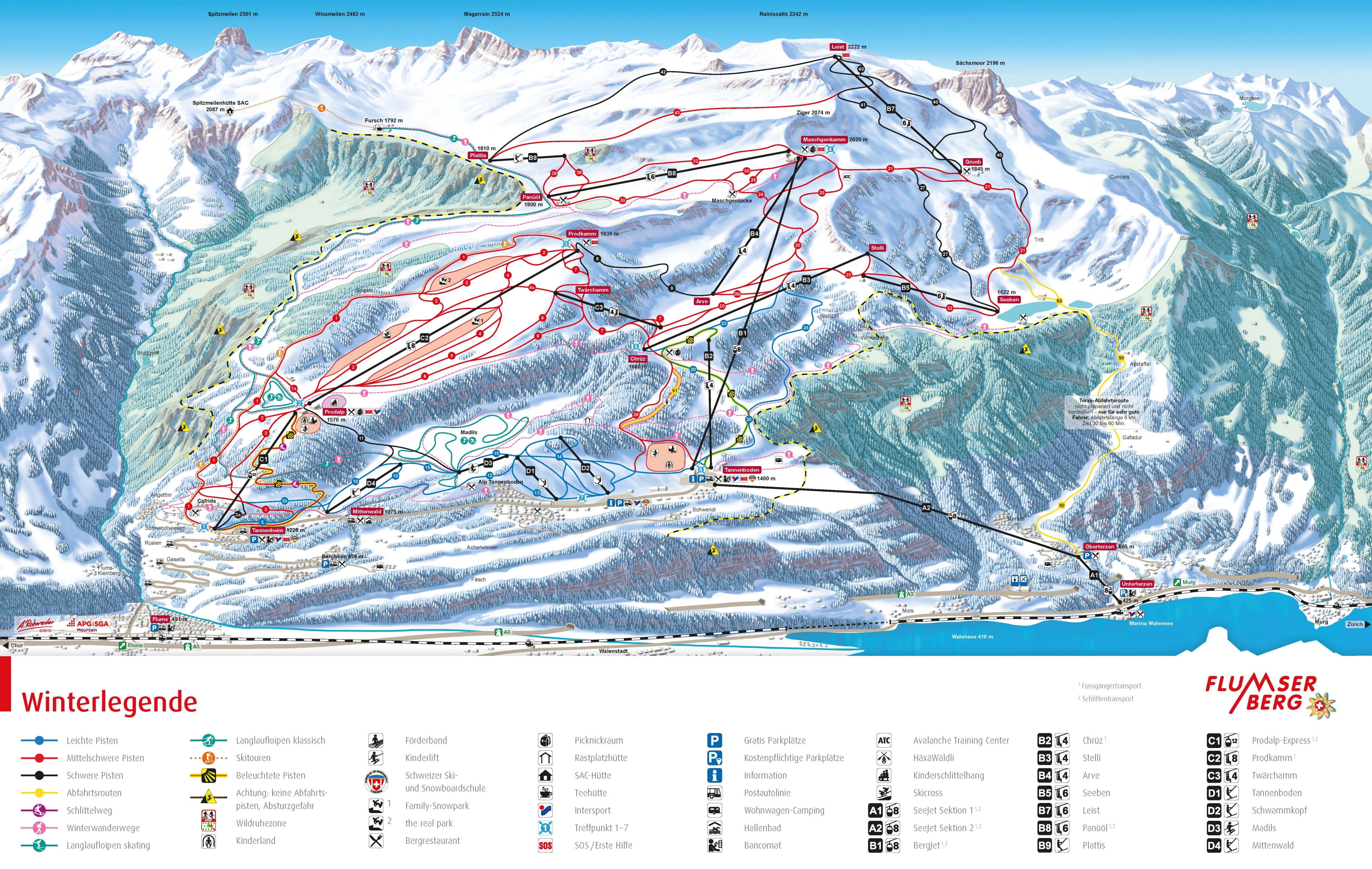 Das schneesichere Wintersportgebiet ist die grösste Wintersportdestination zwischen Zürich und Chur. Die Flumserberge bieten Pisten in allen Schwierigkeitsgraden und auf Snowboarder warten Funparks und Freeride-Feeling. Modernste Bahn- und Beschneiungsanlagen garantieren den totalen Schneespass! Langläufer finden auf der Prodalp und auf der Alp Tannenboden 19 km Loipen. Für Action sorgt ausserdem die 3km lange Schlittelbahn von Prodalp nach Tannenheim.