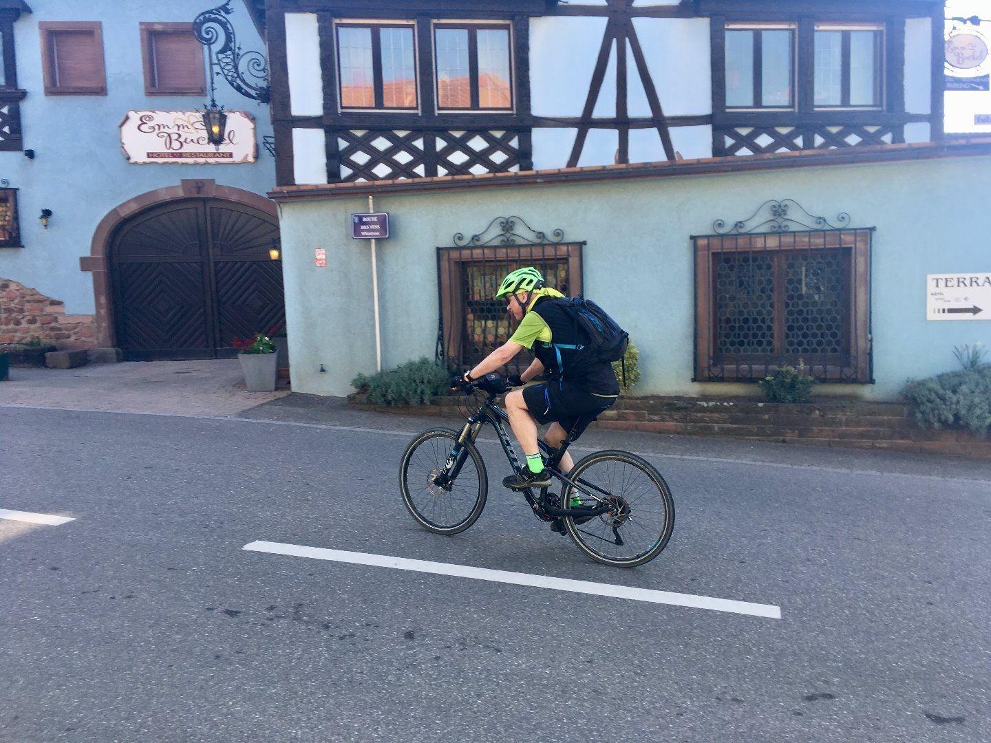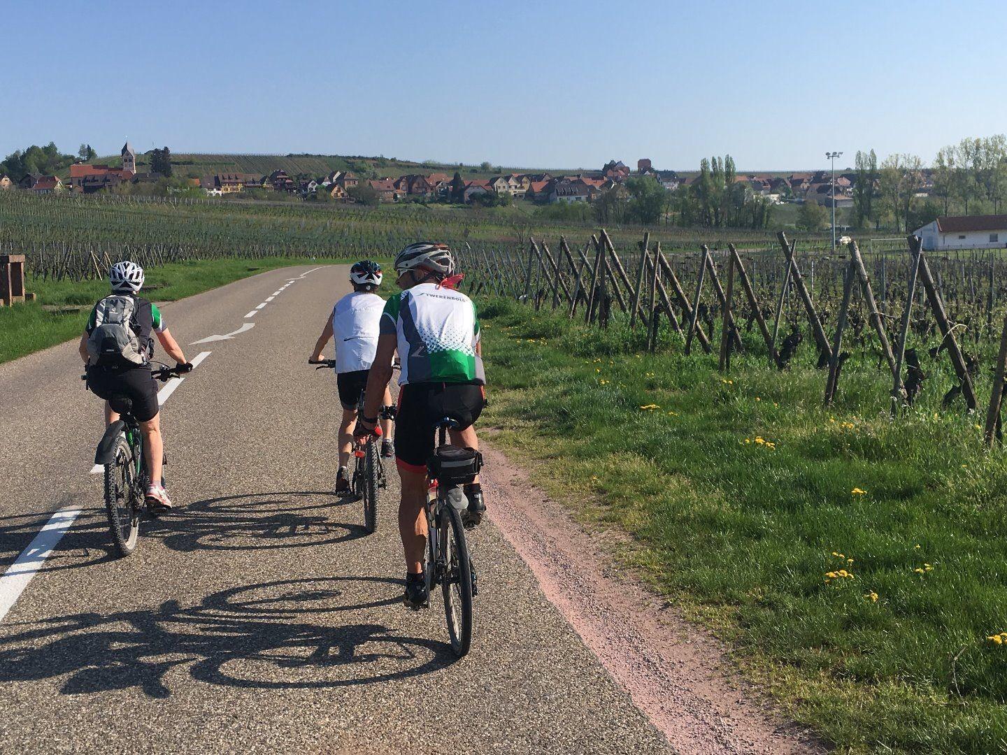 Mit dem Bus geht es heute nach Sélestat, wo wir die Velos ausladen und uns auf den Weg Richtung Strassburg machen. Die Route folgt anfänglich der ausgeschilderten Route du Vin. Wir durchfahren einige bekannte und auch sehr gepflegte Weindörfer. Die Route ist abwechslungsreich und topografisch anspruchsvoller als der Vortag. In Obernai ist Zeit für Kaffee und Kuchen – auch das gehört dazu!
