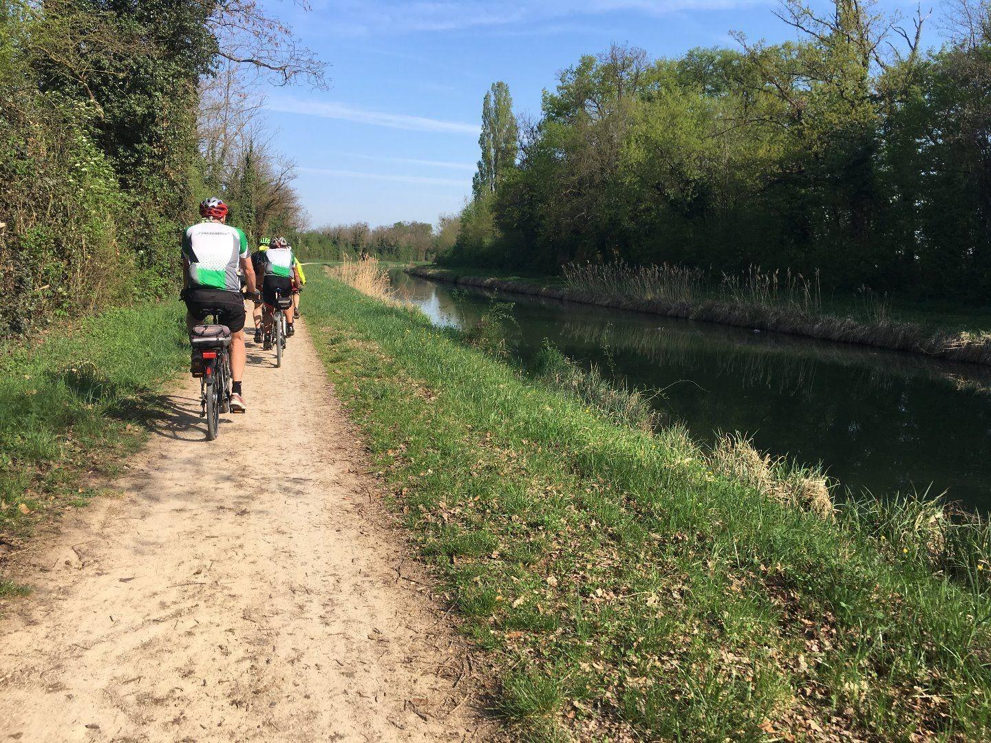 Die Busfahrt ins Elsass ist kurz, es bleibt nicht viel Zeit, sich und die Reisegruppe zu organisieren. Entsprechend wichtig wird die Vorbereitung durch den Teamleader sein. Der gewählte Startplatz in Rosenau ist bei einem Restaurant. Hier gilt es abzuklären, ob der Wirt morgens ein bisschen früher aufmachen könnte, um den Gästen Kaffee und Croissants anzubieten, während die Crew die Velos auslädt. Leider ist der Platz für Gruppenfahrübungen nicht geeignet – es ist ein Kiesplatz! Hier muss man demnach speziell aufpassen und die Gruppe mündlich über das Fahren in der Gruppe und die Funktion der E-Bikes informieren. Der Start der heutigen Etappe geht dann sofort in einen relativ schmalen und anfänglich geteerten Radweg über. Hier kann man dann nochmals Tips und Hinweise für das Fahren in der Gruppe und den Gegenverkehr geben.
