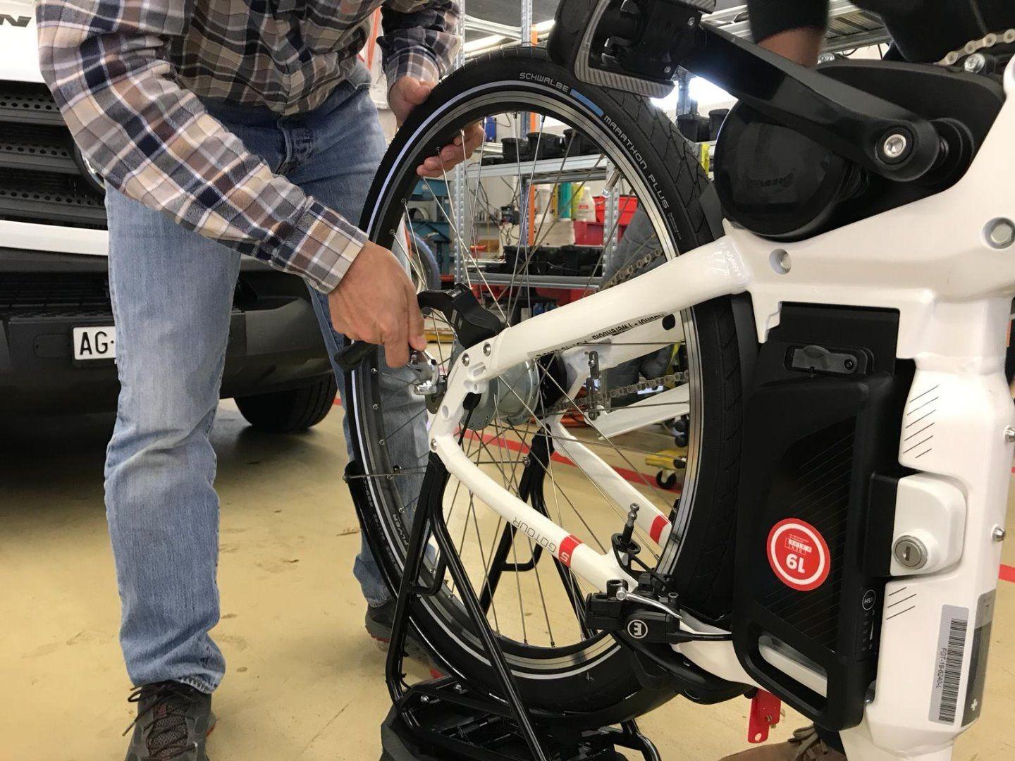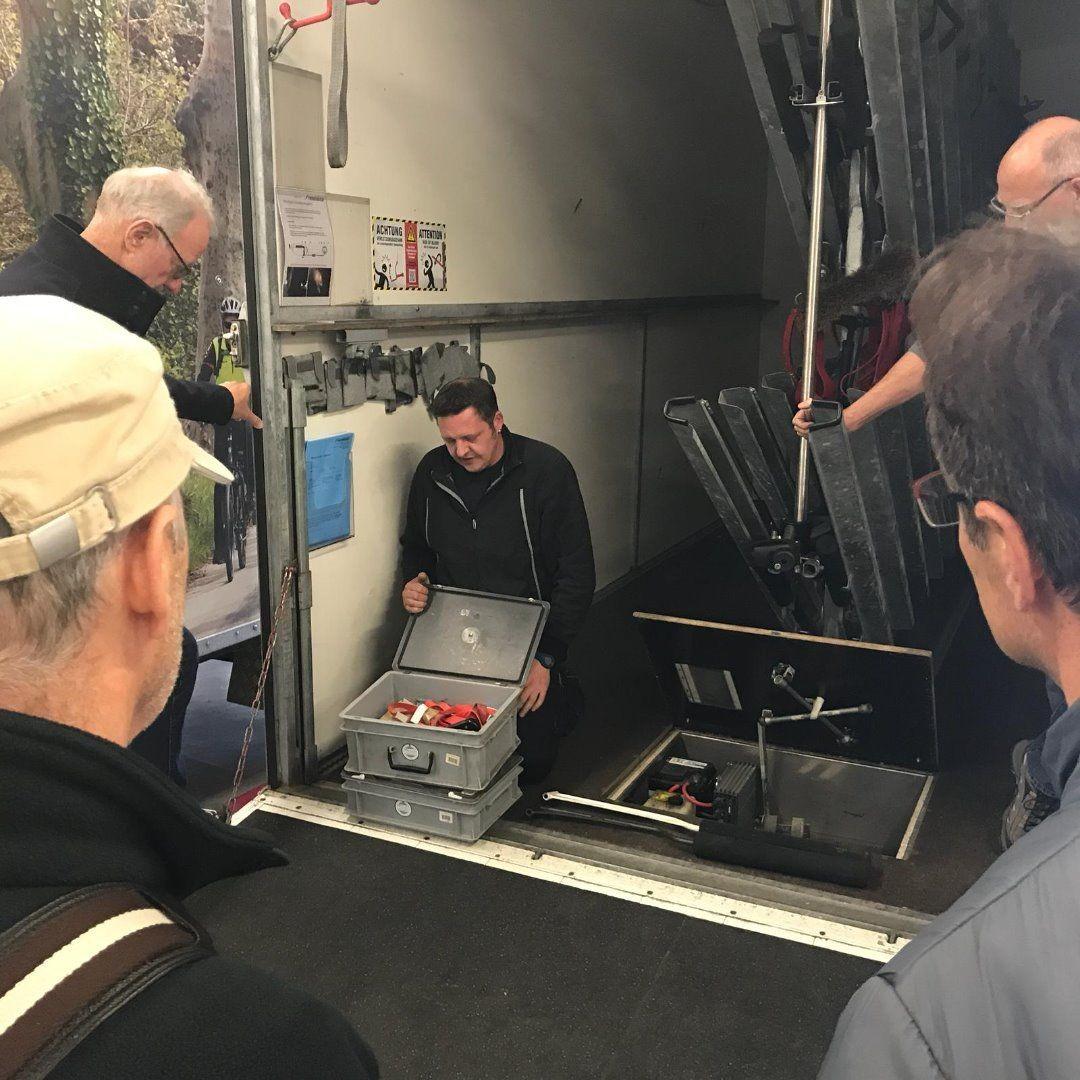 Anschliessend zeigte Thomas Sommer wie man einen Veloanhänger fachmännisch belädt, um den Platz optimal auszunutzen und Transportschäden zu vermeiden.
