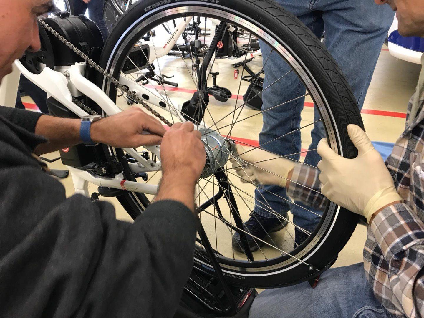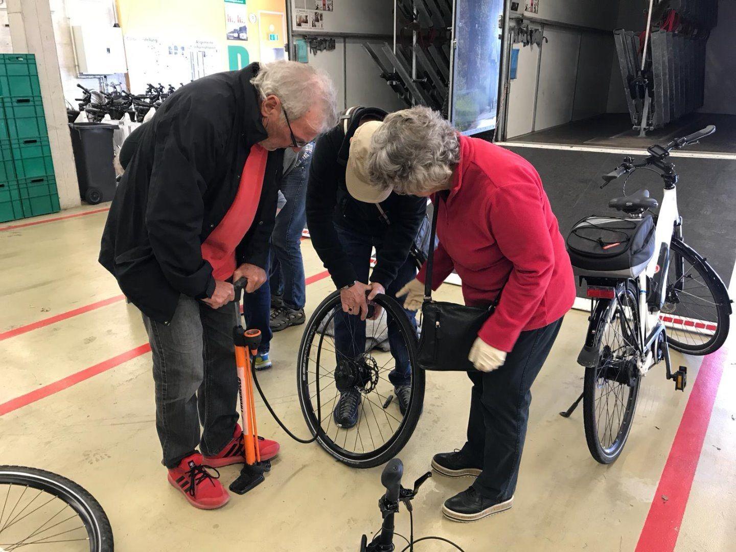 Am ersten Tag lernten die Veloreiseleiter kleinere Reparaturen unterwegs an den Mietvelos selbst durchzuführen. Es wurde auch gleich alles Gelernte umgesetzt und in der Praxis geübt.