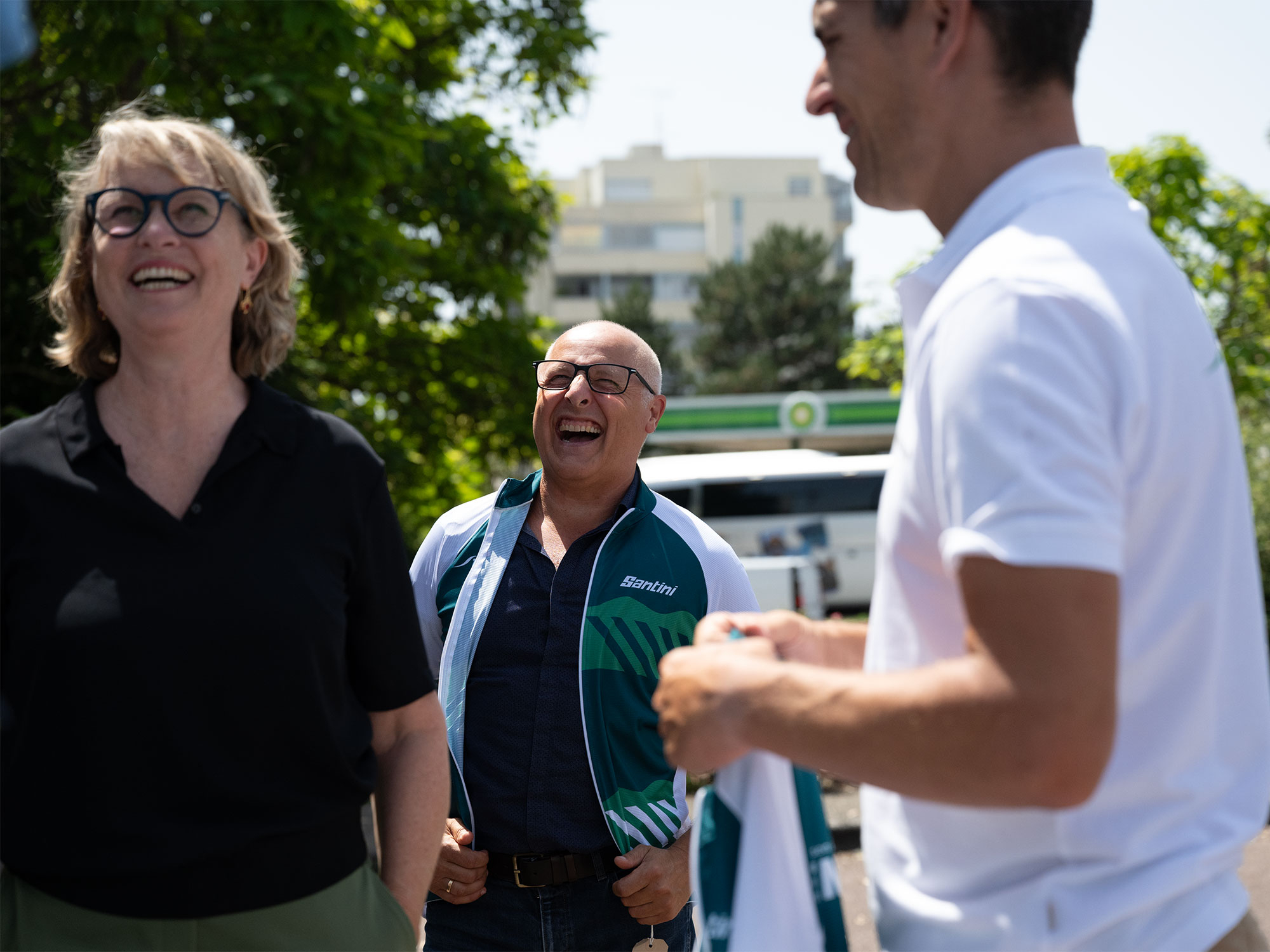 ER: Meine Frau hat sich noch eine Aufgabe aufgehalst: In unserer Velogruppe trug sie das maillot jaune, das gelbe Trikot.