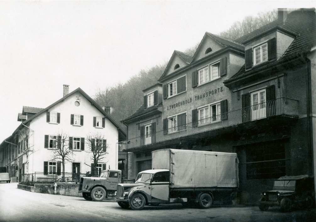 Die drei Brüder Walter, Hans und Josef Twerenbold waren von Kindsbeinen an im Familienbetrieb tätig und per 1. Januar 1937 übernahmen sie offiziell die Fuhrhalterei ihres Vaters. Kurz vor dem Zweiten Weltkrieg gründeten sie die «Gebrüder Twerenbold Transporte», die sie später in eine Aktiengesellschaft umwandelten.