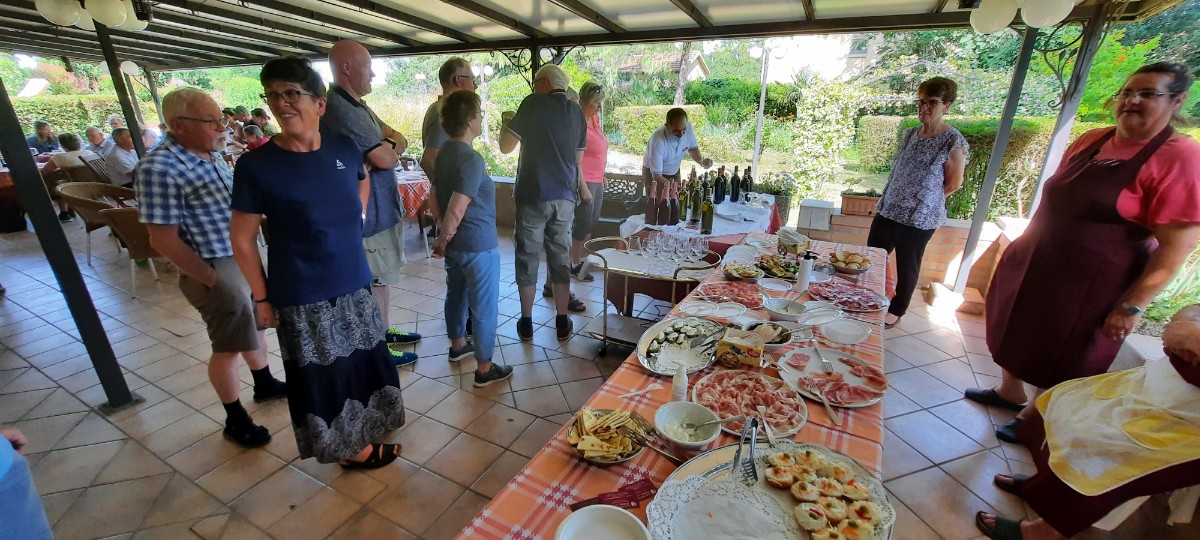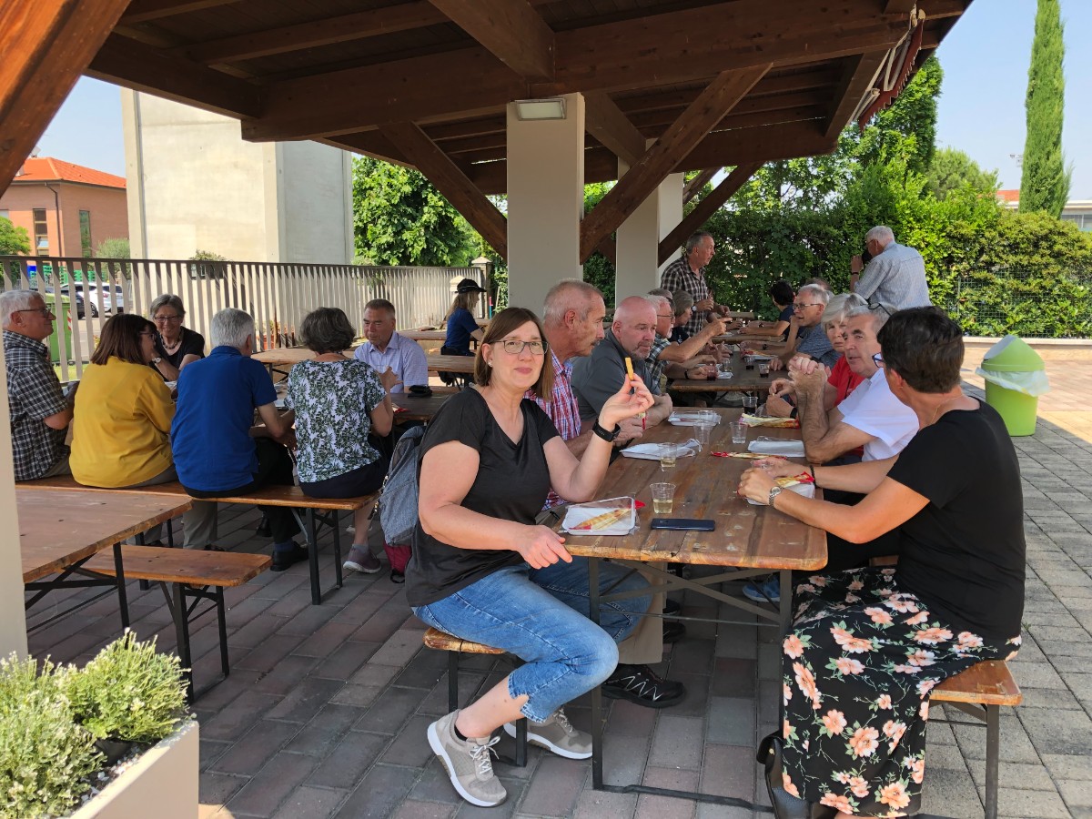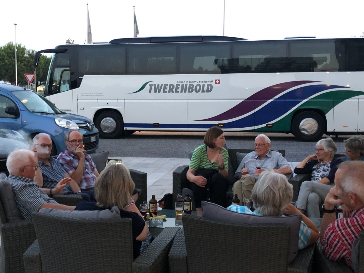 Am Tag 2 erkundeten wir die hübsche Stadt Ravenna. Die Reiseführerin zeigte uns die vielen beeindruckenden Mosaike und die schönen Bauten. In den belebten Strassen begegneten sich viele Velofahrer und Fussgänger. Nach dem Mittagessen flanierten und «pösteleten» wir, inkl. feine Gelati essen. Pünktlich um sieben Uhr brachte uns Martin wieder zur Stadt zum Nachtessen. Wir genossen ein typisch italienisches Essen mit feiner Pasta. Später der gemütliche Ausklang an der Hotelbar.