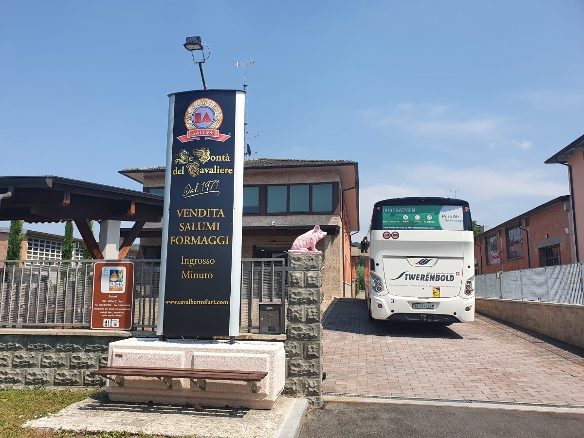 Mit unserem Chauffeur Martin von Twerenbold fuhren wir von Niederrohrdorf durch den Gotthardtunnel nach Bellinzona. Nach dem Kafihalt war unsere Reisegesellschaft vollständig. Anschliessend ging die Fahrt weiter nach Parma. So schön, einmal nicht selbst fahren zu müssen – die Aussicht aus dem Car war interessant und machte Freude – eindrücklich die riesige, völlig flache Po-Ebene. Die Führung in einer Parma-Schinken-Manufaktur zeigte uns den grossen Arbeitsaufwand und die strengen Vorschriften betreffend die Aufzucht der Schweine und die Bearbeitung des Fleisches (nur Salz und viel Zeit).