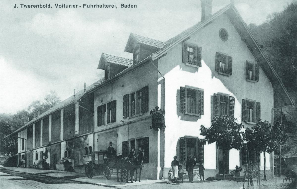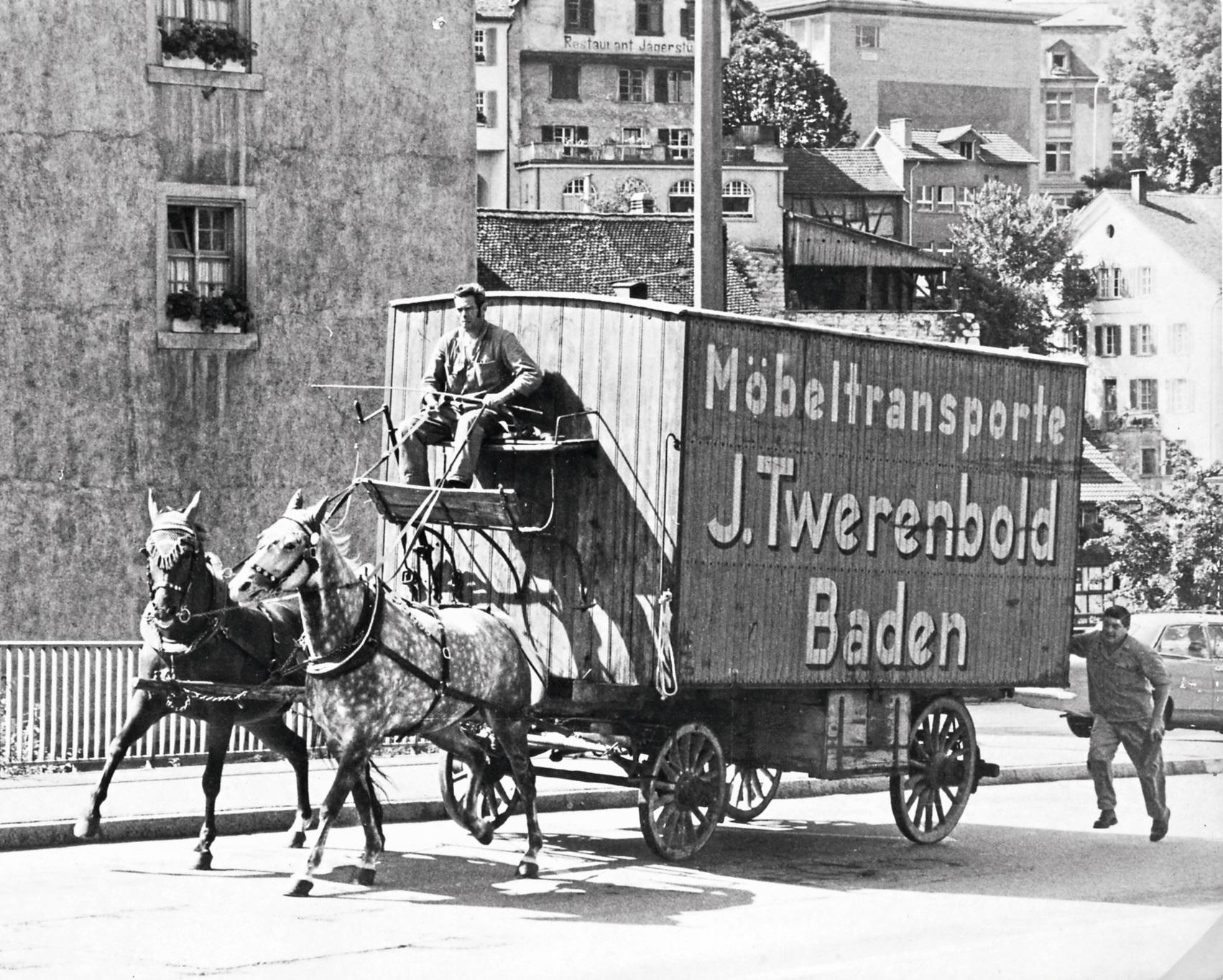 In den ersten Jahrzehnten setzt Firmengründer Jakob Twerenbold für seinen Kutschenservice und bei den Warentransporten ganz auf Pferde. 1919 kauft er für 15'000 Franken den ersten Lastwagen. Bald folgen weitere. Sechs Jahre später bietet Twerenbold im luftbereiften «Saurer» erstmals Busausflüge an. Ab 1926 verkehrt in Baden ein Citroën als Twerenbold-Taxi.