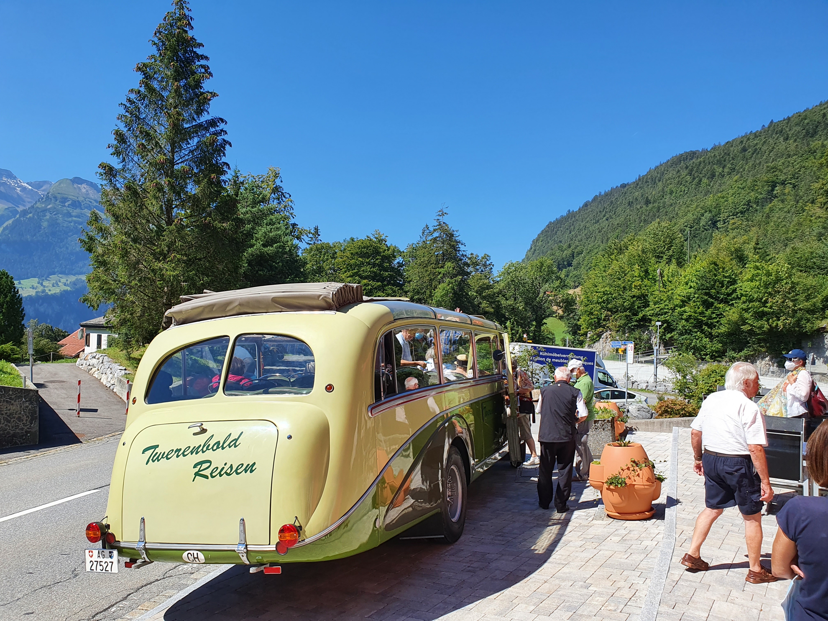 Zu Ehren unseres 125-jährigen Firmenjubiläums war eine Gruppe auf Nostalgiereise mit dem Oldtimer unterwegs ins Herz der Schweiz. Der Chauffeur hat uns die schönsten Eindrücke von unterwegs mitgebracht. Traumhaftes Sommerwetter, gemächliches Reisetempo und herrliche Ausblicke machten die zwei Tage in der Innerschweiz zu einem einzigartigen Reiseerlebnis.