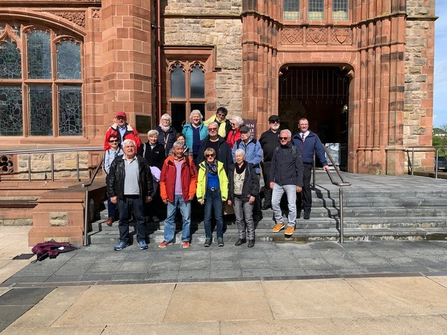 Mit dem Bus der Firma Twerenbold ging es an den Flughafen Zürich: So begann die Reise an einem Sonntagmorgen früh. Bei schönstem Wetter landete die Gruppe in Dublin. Die Fahrt mit Bus und Guide führte die Teilnehmenden an der Ostküste entlang via Howth, ein bekanntes Fischerdorf, wo es die weltbesten Fish and Chips gibt, hinauf nach Belfast. Abends erkundete die Gruppe zu Fuss die Innenstadt mit all den geschichtsträchtigen Bauten, einige davon über 150 Jahre alt.
