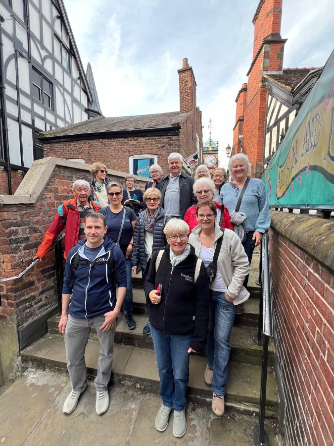 Flair sind eine Attraktion. Ein Highlight war der dritte Tag, an dem es zum ältesten Nationalpark Englands ging, zum Peak District Nationalpark. Hier bestaunt man die abwechslungsreiche Natur, die vielen Landsitze sowie das industrielle Erbe: die Spinnereien. Tag vier ging es in den Süden nach Wales zum 700 Jahre alten Conwy Castle, welches 1986 in die Liste der UNESCO-Kulturdenkmäler aufgenommen wurde. Der nächste Tag versprach wie schon die vorhergehenden sonnig und warm zu werden. Perfekt für den Ausflug nach Langollen. Eine Schifffahrt entlang eines der schönsten Kanäle Grossbritanniens. Gezogen von einem Pferd konnte die Gruppe das Tempo aus alten Tagen nachempfinden. Der nächste Halt versprach Einblicke in eine Welt, die Ende des 18. Jahrhunderts aussergewöhnlich war. Eleanor Butler und ihre Freundin Sarah Ponsonby kamen von Irland nach Plas Newydd und lebten fast 50 Jahre zusammen. Die «Ladies of Langollcn» wurden allmählich bekannt, bekamen viel Besuch von Berühmtheiten und hatten viel Zeit, ihr eigentümliches Haus auszubauen. Jeder Besucher wurde angefragt, irgendetwas von zu Hause mitzubringen, und so sind zum Beispiel die Pfosten links und rechts des Eingangs ehemalige Bettpfosten.
