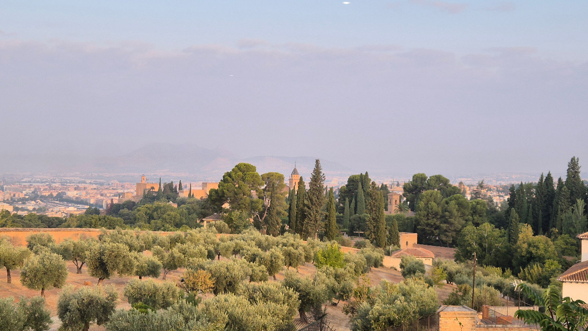 Satt und zufrieden spaziere ich nach dem Essen zu einem Aussichtspunkt und danach zum Strand, um das Meer ein wenig zu geniessen. Heute endet unser Tag etwas früher, sodass ich die Gelegenheit nutze, im Hotel den Pool zu geniessen und anschliessend die Umgebung zu erkunden. Direkt neben dem Hotel befindet sich ein wunderschöner Olivenhain mit Blick auf Granada.