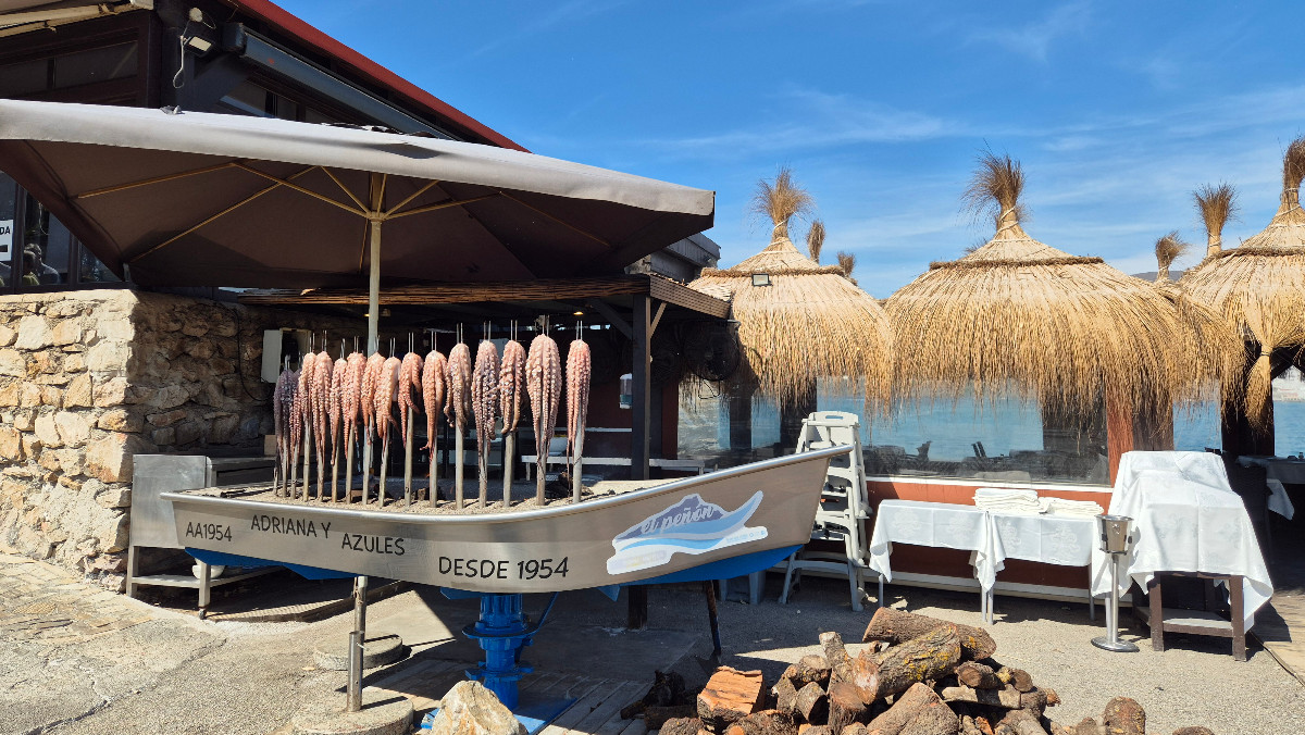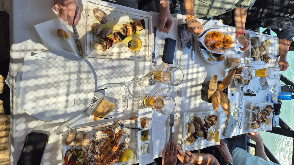 Die Fahrt führt uns weiter hinunter zur Küste. Nachdem wir die kurvigen Strassen hinter uns gelassen haben, dauert es nicht lange, bis wir das Meer aus dem Busfenster erblicken. Es ist Mittagszeit und mein Magen knurrt, doch Pedro und Martin kommen zur Rettung. Sie führen uns in ein Fischrestaurant mit spektakulärer Lage: Direkt am Meer, mit Blick auf Salobreña und das Schloss, das auf einem Hügel thront. Fast so schön wie der Ausblick finde ich die jungen Katzen, die sich langsam anschleichen, als die ersten Gäste eintreffen. Auf Empfehlung von Pedro und Martin bestelle ich einen Spiess mit Garnelen und Seeteufel – und werde nicht enttäuscht.