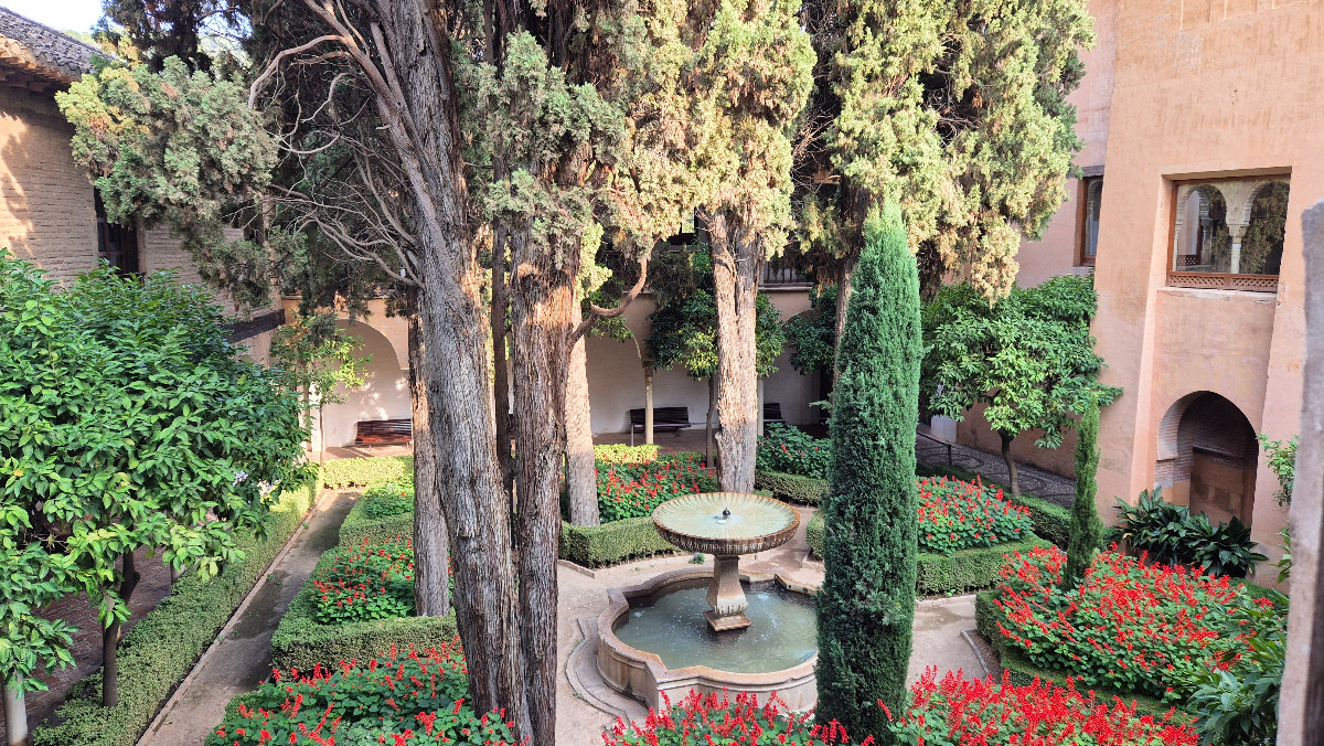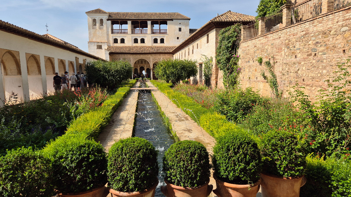 Wir sind alle gespannt, was uns in dieser weltberühmten Festungsanlage erwartet. Zuerst besuchen wir die Generalife-Gärten. Wir schlendern durch ein Meer von bunten Blumen und vorbei an plätschernden Brunnen. Schon jetzt sind wir begeistert, aber Pedro sagt: „Wartet nur, es wird immer besser.“