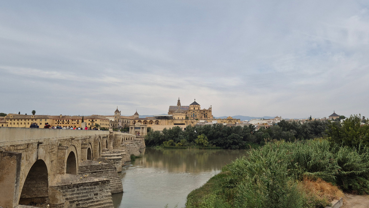 Heute fahren wir nach Córdoba. Es ist leicht bewölkt, worüber ich jedoch froh bin, da ich von Martin erfahre, dass die Stadt normalerweise einer der heissesten Orte unserer Reise ist. Der Blick auf Córdoba von der gegenüberliegenden Flussseite ist beeindruckend. Die Brücke, die den Fluss überspannt, und dahinter die Kathedralmoschee, die über die Dächer der Häuser ragt, bieten ein eindrucksvolles Bild.