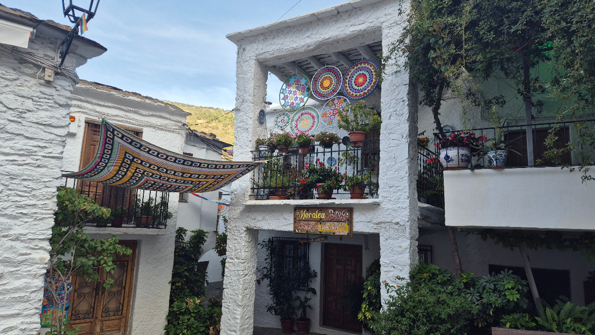 Pedro erzählt uns von der Legende des Brunnens in Pampaneira: Wer von seinem Wasser trinkt, soll im nächsten Jahr heiraten, und wer bereits verheiratet ist, erlebt angeblich den gegenteiligen Effekt. Magisch finde ich auch den Laden am Dorfplatz, dessen Decke mit unzähligen Windspielen geschmückt ist. Beim Betreten erzeugen die klingenden Windspiele eine zauberhafte Atmosphäre.