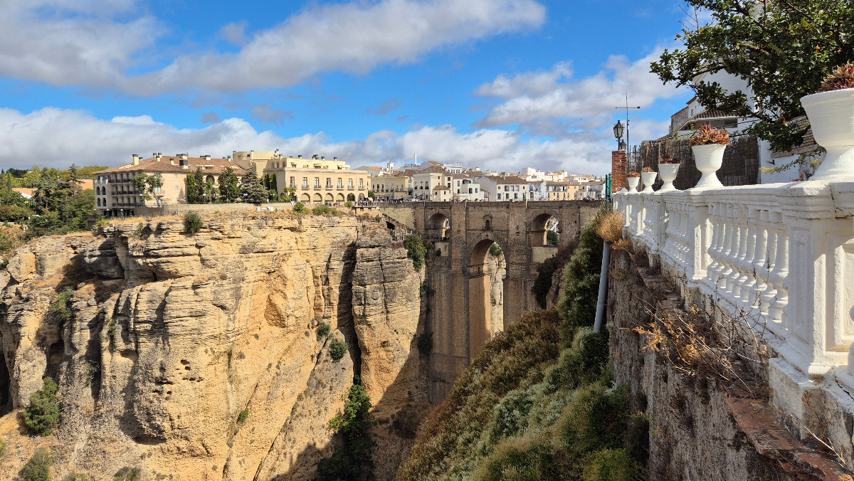 Ich habe schon viel von Ronda und der beeindruckenden Brücke gehört und bin gespannt, sie endlich mit eigenen Augen zu sehen. In Ronda begrüsst uns unser Reiseführer Jesús, der uns durch die Stadt führt. Wir spazieren durch wunderschöne Parks, vorbei an einem Aussichtspunkt mit Blick über die umliegenden Felder und zur Stierkampfarena. Schliesslich erreichen wir die berühmte Brücke und machen unsere ersten Fotos. Jesús verspricht uns jedoch einen noch besseren Ausblick von einem noch besseren Ort.