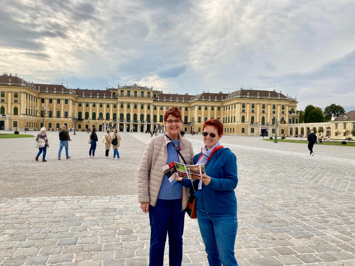 Unsere Fremdenführerin Elisabeth fährt heute im Bus mit und erzählt Geschichten über Wien. Sichtlich stolz und interessant erklärt sie den Aufbau der Stadt und die herrschaftlichen Bauten. Über Könige, Kaiser, Komponisten, Maler und sonstige Prominenz gibt es unendlich viel zu berichten. Tatsächlich hat diese wunderbare Stadt zahlreiche namhafte Künstler hervorgebracht, vor allem weltberühmte Komponisten: Beethoven, Haydn, Mozart, Schubert, Strauss und viele mehr – sie alle sind deshalb irgendwo verewigt. Beim Hundertwasserhaus dürfen wir kurz einen Blick auf das Werk des Ausnahmekünstlers des 20. Jahrhunderts, Friedensreich Hundertwasser, Maler und Architekt, werfen.