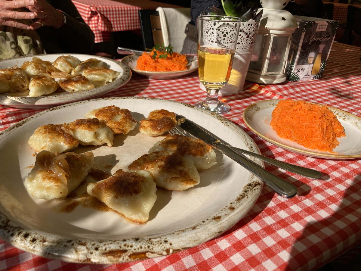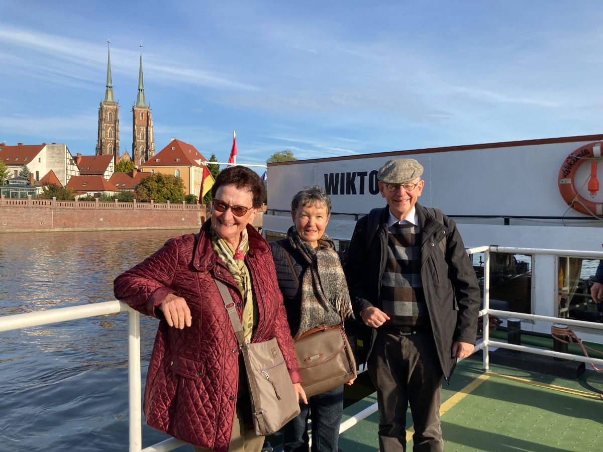 Der perfekte Ausgangspunkt ist der Marktplatz: die herrlich farbigen, wunderschön renovierten Gründerzeithäuser rund um den Marktplatz sind ein einmaliges Fotosujet. Das alte Rathaus dort ist eines der Wahrzeichen der Stadt. Die architektonische Vielfalt ist eindrücklich; vom futuristischen Sky Tower oder der Konzerthalle bis zum gotischen Breslauer Dom. Wir staunen immer wieder über die unterschiedlichen Baustile. Unter anderem besuchen wir auch das Oratorium Marianum, den prächtigen barocken Festsaal der Universität. Die zwei Stunden Stadtführung sind so schnell vorbei und wir werden die Tour beim Marktplatz beenden. Dorthin geht es mit dem Tram, das die Senioren in Breslau gratis nutzen dürfen. Der restliche Nachmittag steht zur freien Verfügung. In der Gartenwirtschaft eines typisch polnischen Restaurants probieren wir unsere ersten Piroggen (gefüllte Teigtaschen mit Kraut oder Fleisch). Danach machen wir uns zu viert auf die Suche nach einer Anlegestelle, um eine Bootstour auf der Oder zu machen. Bei diesem fantastischen warmen Wetter unter blauem Himmel ist das fast ein Muss. Etwas relaxen – denken wir – aber da wir das Boot mit einer quirligen Schulklasse teilen, fällt das Ausruhen ins nahe Wasser. Der forsche Kapitän sorgt aber immer wieder mal mit Rufen oder Hupen für Ordnung und so ist alles nur halb so schlimm. Wir sind uns einig: Breslau hat uns überrascht! So vielseitig und spannend, überschaubar und modern erschlossen. Unseren Aufenthalt beenden wir mit einem Cocktail in einer hippen Bar, wo uns zu den Drinks von jungem umtriebigem Personal selbstgebackenes Olivenbrot serviert wird.