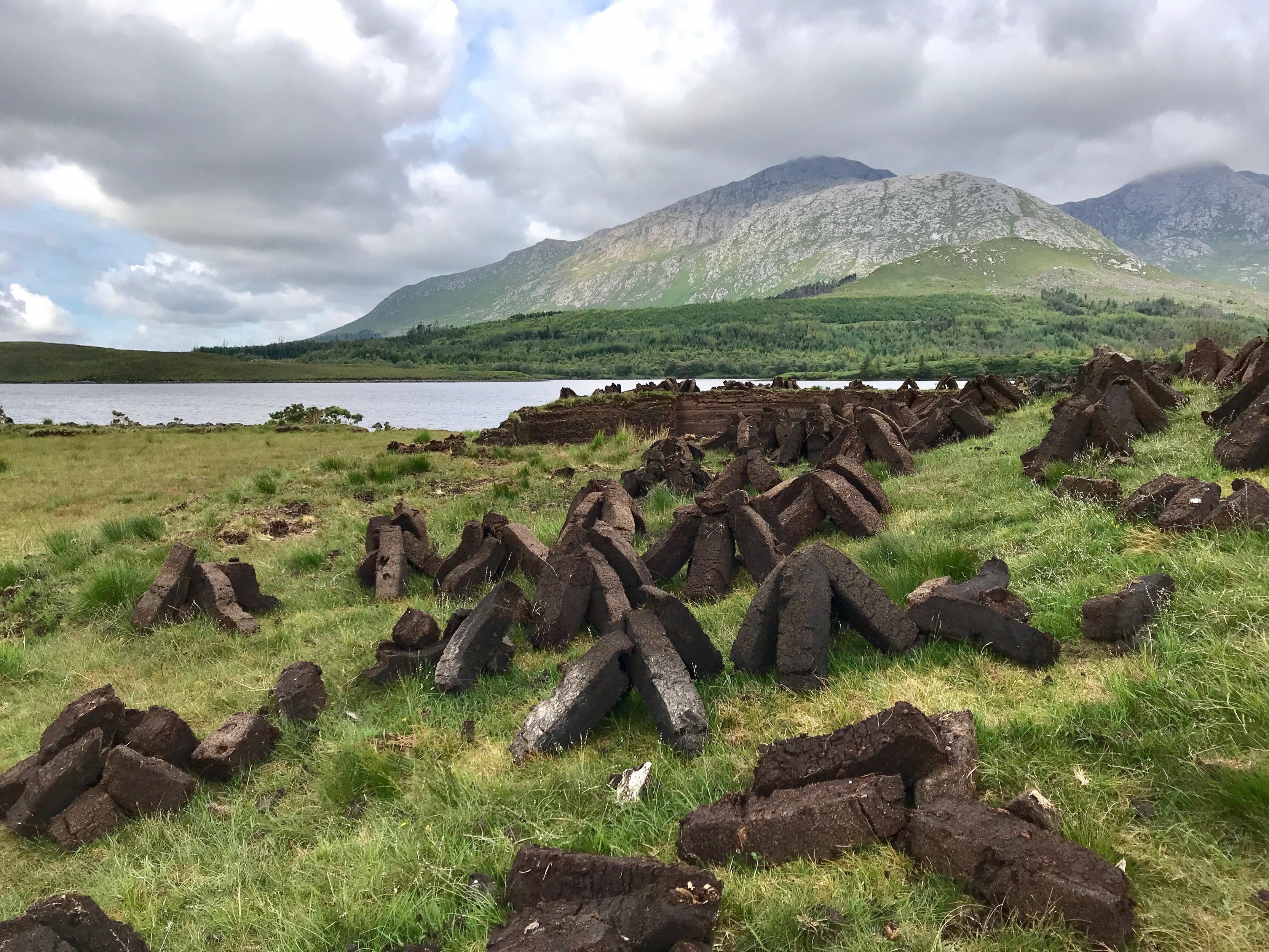Entlang der Galway Bay geht es heute Vormittag in die typisch irische Region Connemara. Etwas nördlich, im Landesinnern, fahren wir an unzähligen kleinen Süsswasserseen vorbei, die von kleinen Hügeln umrahmt sind. Die Strassen sind eng und etwas uneben, aber die Aussicht auf die abwechslungsreiche Landschaft entschädigt uns für die holprige Fahrt. Der Wechsel von Schatten und Sonne auf den grünen Wiesen verzaubert uns. Richie erzählt uns wieder viel Spannendes und manchmal gar etwas Gruseliges – was er stets humorvoll zu umrahmen weiss. Natürlich beglückt er uns auch heute wieder mit einem Volkslied. Einfach sensationell, wie er uns seine Kultur in allen Bereichen näher bringt. Immer wieder entdecken wir Torffelder. Der getrocknete Torf wird als Heizmaterial verwendet. Bei einem Kaffeehalt in Maam Cross können wir eine Nase voll nehmen, wenn dieser Torf als Brikett verbrannt wird – nun, etwas gewöhnungsbedürftig, dieser beissende Geruch.