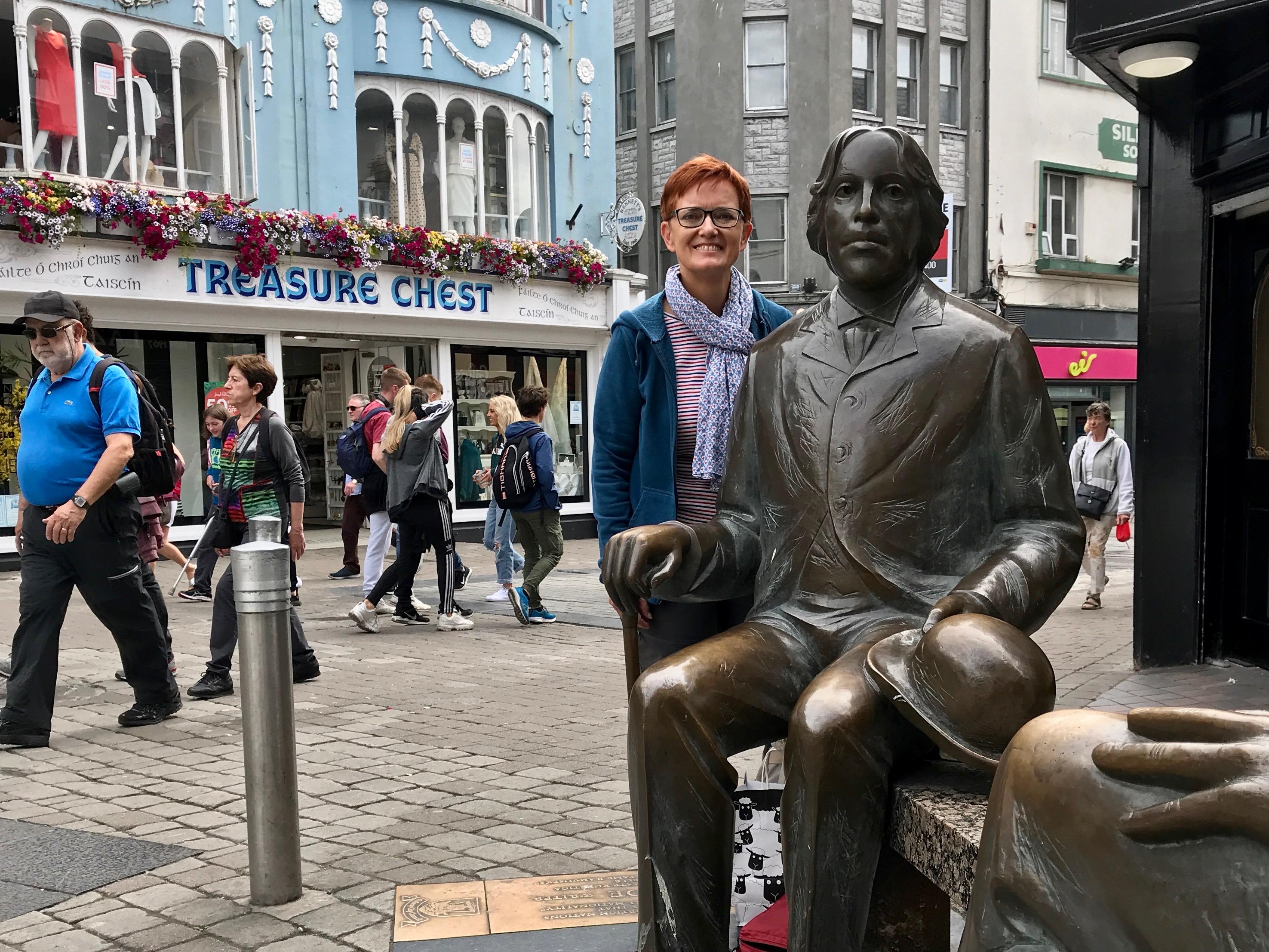 In einem urigen alten Pub ist für uns ein einfaches Mittagessen reserviert: Gemüsesuppe und kleine Sandwiches. Dazu trinkt man üblicherweise ein Bier. In Galway, wo wir nach einer kurzen Führung noch etwas freie Zeit haben, genehmige ich mir in netter Gesellschaft meinen ersten Irish Coffee. Dieser fröhliche Ort am River Corrib hat ein besonderes Flair; farbige Häuser mit viel Blumenschmuck und kleinen und grossen Strassenmusikern prägen die Innenstadt. Besonders gefällt mir die Bronzeskulptur von Oscar Wilde, dem bekannten irischen Schriftsteller und Lebemann. Am frühen Abend beziehen wir unser nächstes Hotel, in dem wir für zwei Nächte logieren werden. Heute gibt es den etwas verspäteten Willkommensdrink – «Slainte!»