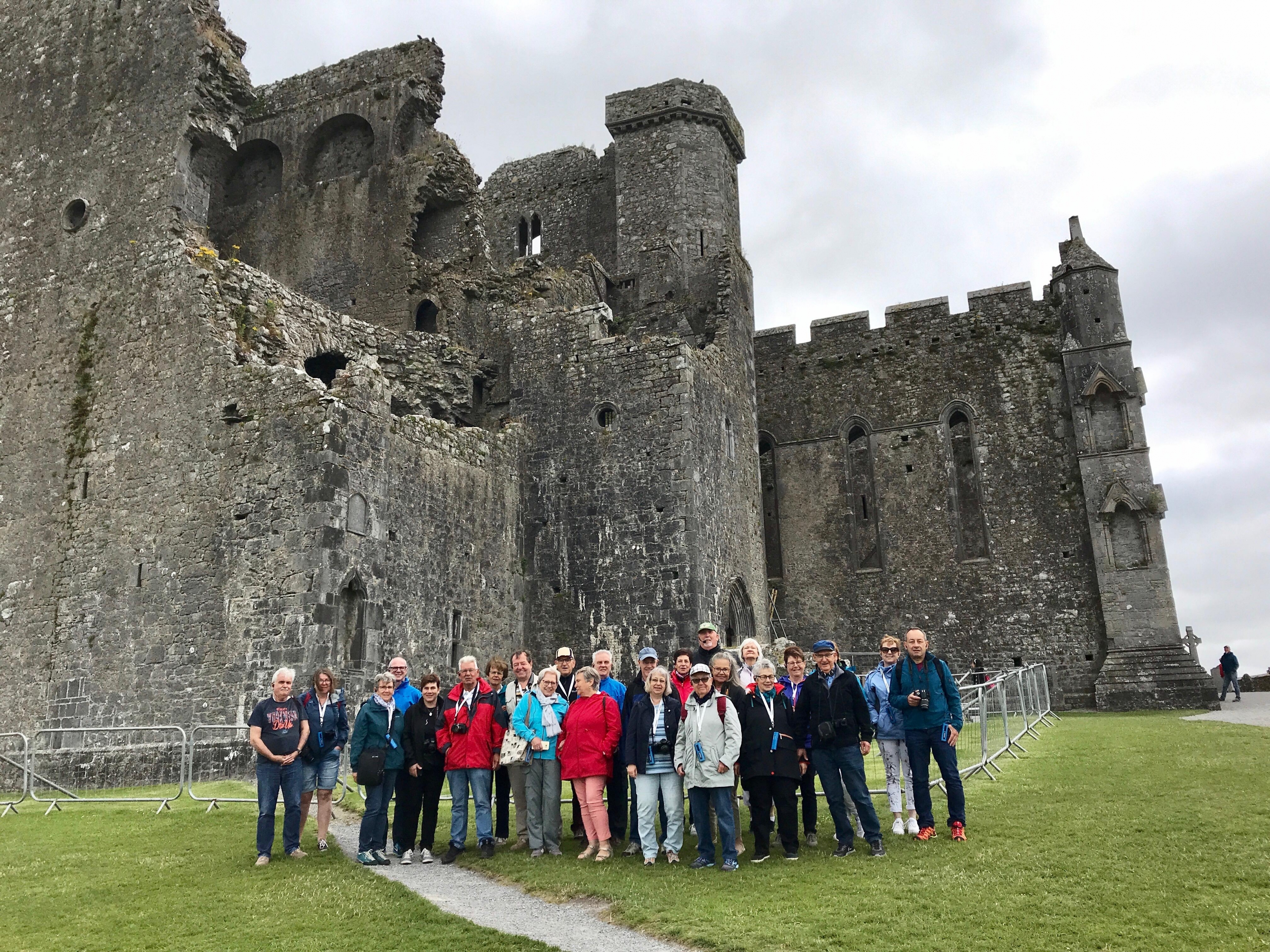 Nach einem reichhaltigen Frühstück – mit frischen Früchten – fahren wir wieder mit Gepäck in Richtung Dublin. Nach rund einer Stunde machen wir einen Zwischenhalt und besuchen das Rock of Cashel, das zur Zeit leider für die Besucher gesperrt ist und nur von aussen besichtigt werden kann. Es ist ein einzigartiges Monument, in dem Feen und Geister schon im Altertum herumgespukt sein sollen. Als Kulisse für unser Gruppenbild eignet es sich hervorragend.