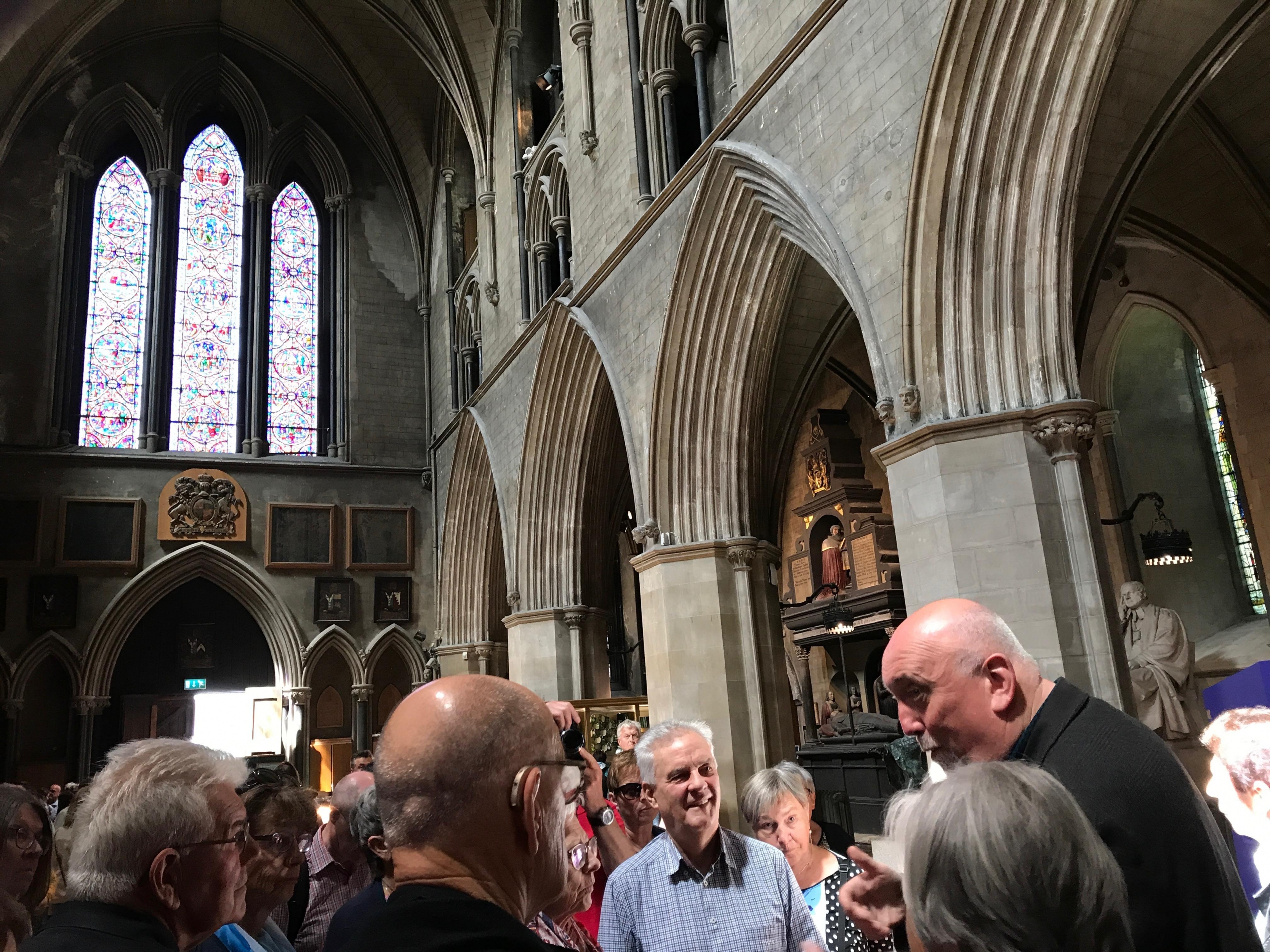 Der Flug von Zürich nach Dublin verläuft reibungslos und wir werden dort beim Ausgang pünktlich von zwei Männern empfangen: Jack und Richie. Am heutigen Tag werden wir in einem irischen Bus transportiert, damit Chauffeur Jack seinen «fahrfreien» Tag einziehen kann. Richie, ein einheimischer Hüne, stellt sich als unser Führer vor. Schon bald ist klar, dass wir in ihm einen genialen Guide haben. Mit irischem Schalk bringt er uns immer wieder zum Schmunzeln und wenn er während der Fahrt Volkslieder trällert, summen wir gerne bei bekannten Melodien mit ... «What shall we do with the drunken Sailor ..» geht mir schon gar nicht mehr aus dem Kopf. Die Stadtrundfahrt in Dublin gestaltet er mit vielen kleinen Anekdoten spannend und lehrreich. Auch in der St. Patrick’s Cathedral führt er uns durch die langen Kirchengänge und weist uns auf viele Details hin. Nach einem Abstecher an den Stadtrand zum Phoenixpark, der eine Fläche von über 700 Hektaren hat, bringt uns der Bus zum Stadthotel, das direkt gegenüber der Christ Church liegt. Erschöpft beziehen wir unsere Zimmer. Wer möchte, erkundet aber vor dem Nachtessen die nähere Umgebung. Nur gerade «um die Ecke» findet man nämlich das wohl bekannteste Quartier von Dublin, Temple Bar. Unzählige Bars und Pubs findet man hier an diesem quirligen Ort, nur einen Katzensprung vom Fluss Liffey entfernt. Das Nachtessen ist ziemlich früh geplant und nach einem leckeren Menu freut man sich auf die wohlverdiente Nachtruhe.