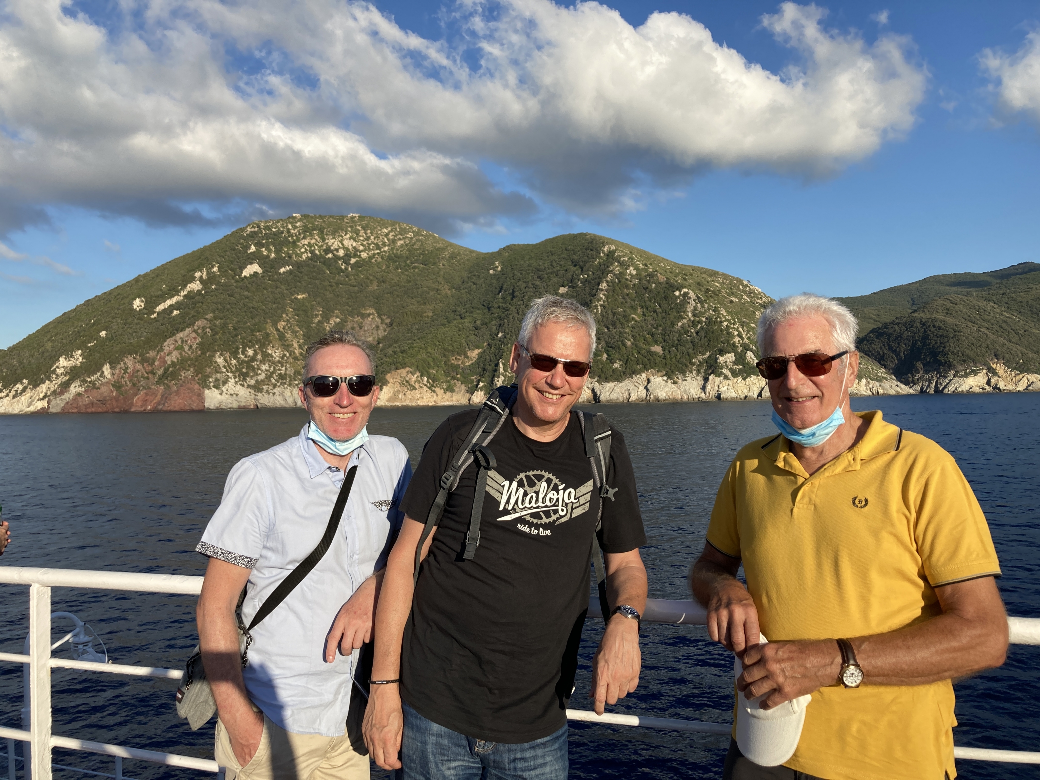 Unsere letzte Velotour führt uns direkt vom Hotel entlang der Westseite des Monte Pericoli durch den Nationalpark Arcipelago Toscano zur Halbinsel Capo Enfola, an der Nordküste. Nach einer kurzen Pause in der Strandbar erklimmen wir die enge Küstenstrasse. Oben angelangt, realisieren wir, dass wir nur zu fünft sind – oh je – die restlichen Biker hinter uns beheben unterwegs einen «Platten». Zum Glück nichts Schlimmeres. So harren wir oben am Schatten relaxed aus, während das Bike im Tal unten souverän repariert wird. An der prallen Sonne fahren wir nun auf der Küstenstrasse nach Portoferraio. In der lebhaften Hafenstadt suchen wir uns ein nettes Lokal für unsere Mittagspause. Etwas irritiert sind wir, als unsere heutige und letzte Tour kurzerhand abgebrochen wird und wir hier im Hafen schon die Bikes verladen sollen. Die Stimmung ist etwas gedämpft aufgrund dieser Entscheidung der Leiter. Die Idee ist, dass der nun volle Veloanhänger hier im Hafen geparkt wird und der Chauffeur nur mit dem Car auf der kurvenreichen Strasse zurück zum Hotel hinauffahren muss. So verbringen wir den sonnigen Nachmittag ganz individuell, sei es am Strand, am Pool, beim Packen oder beim Shopping. Unser letztes Nachtessen im Hotel geniessen wir ganz besonders, im Wissen, dass wir uns nun schon bald voneinander verabschieden müssen. Etwas wehmütig stossen wir beim anschliessenden «Absacker» auf eine unvergessliche Mountainbike-Woche an – pardon –- E-Mountainbikewoche.