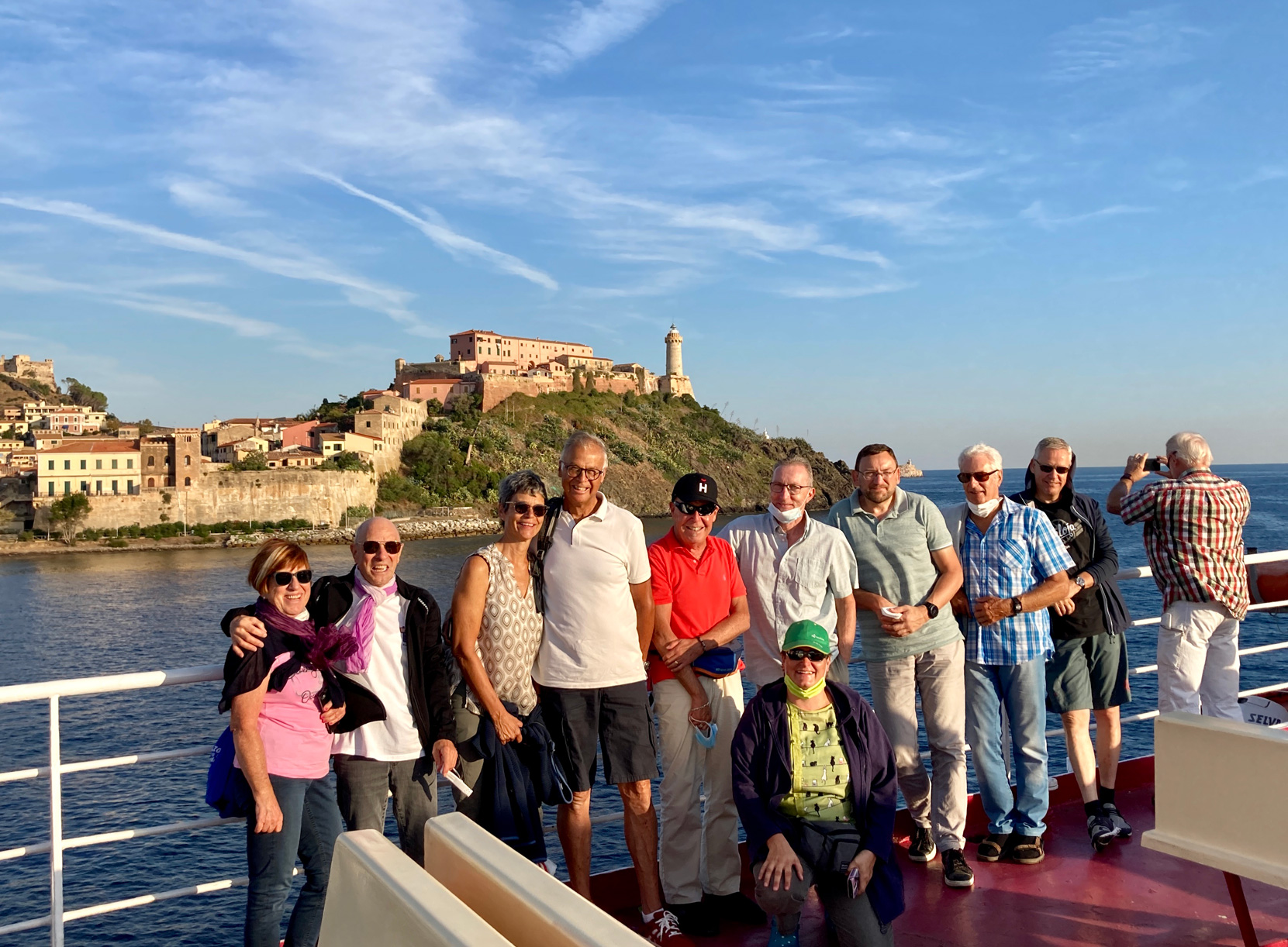 Mit dem Zubringer gelange ich nach Rütihof und treffe dort auf meine maskierten Mitreisenden. Die Hygienevorschriften sind auch auf dieser Reise einzuhalten; bei jeglichen Rotationen im Bus: Maske auf! In Italien müssen wir die Maske sogar während der Fahrt aufbehalten. Die Fahrt via Tessin und Parma verläuft reibungslos. Deshalb erreichen wir den Hafen in Piombino früher, als geplant. Unser Tourguide, Heinz Weber, verhandelt kurzerhand mit Angestellten der Fähre und wir dürfen nun bereits auf die startklare Fähre. Nach gut einer Stunde erreichen wir um 18.30 Uhr die Insel Elba, die eigentlich gar nicht so klein ist, wie man anhand der Landkarte vermutet. Von Portoferraio aus fahren wir noch einmal rund 40 Minuten zum Hotel in Marina di Campo. Wir sind froh, endlich anzukommen. Rasch den Koffer auspacken, denn eine halbe Stunde später gibt es Nachtessen, serviert von den «maskierten» Kellnern. Was die Hygiene-Vorschriften anbelangt, sind die Italiener ganz strikte; ohne Maske geht gar nichts. So darf nur gerade zum Essen und Trinken die Maske abgenommen werden.
