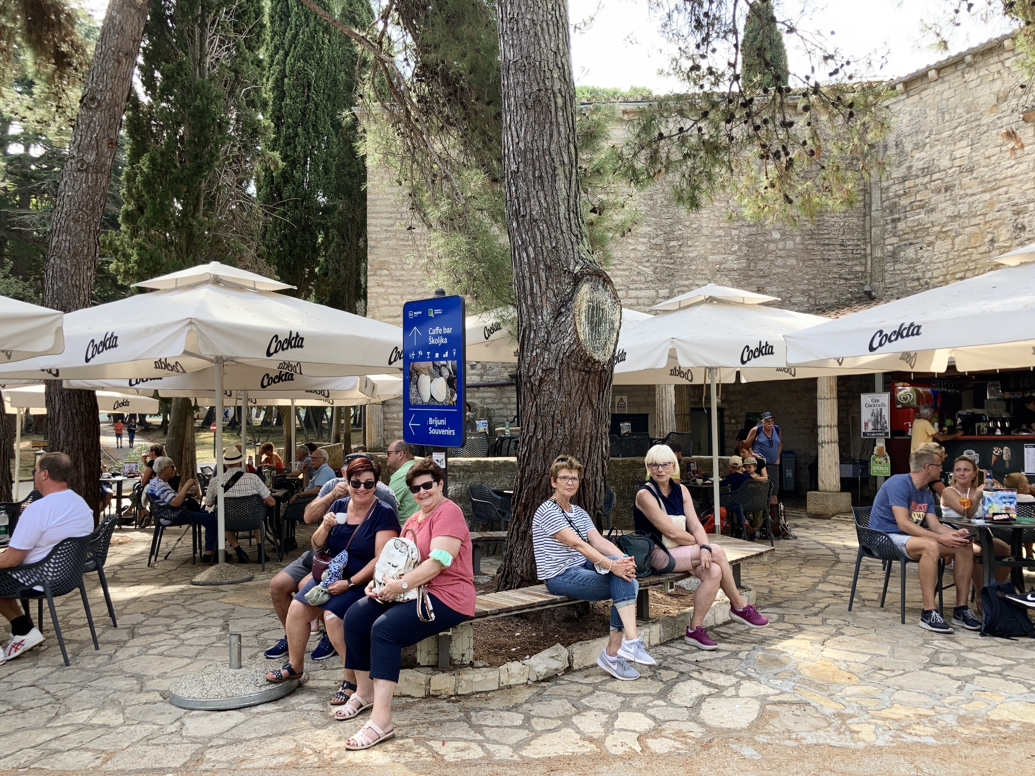 Um 13 Uhr kehren wir wieder zurück nach Fazana, wo wir mit Zoran in einem schattigen Hafenrestaurant einkehren. Nach dem Mittagessen besuchen wir das nahe gelegene Pula. Sie ist die grösste und älteste Stadt Istriens und hat rund 82'000 Einwohner. Die wohl bekannteste Sehenswürdigkeit ist das Amphitheater. Die Arena wird heute für Veranstaltungen und Ausstellungen genutzt und bietet dafür eine absolut eindrückliche Kulisse – man fühlt sich nach Rom ins Kolosseum versetzt. Aber auch der Triumphbogen, das Forum und der Augustustempel sind auf unserem Stadtspaziergang einen Besuch wert. Unsere freie Zeit verbringen wir in der romantischen Altstadt; ich bin entzückt vom bunten Angebot an Boutiquen, Souvenirläden und originellen Kneippen. Drückend heiss wird es plötzlich und wir sind froh, dass es im klimatisierten Bus auf der Rückfahrt so wunderbar angenehm ist. Ein abwechslungsreicher Tag neigt sich dem Ende zu.