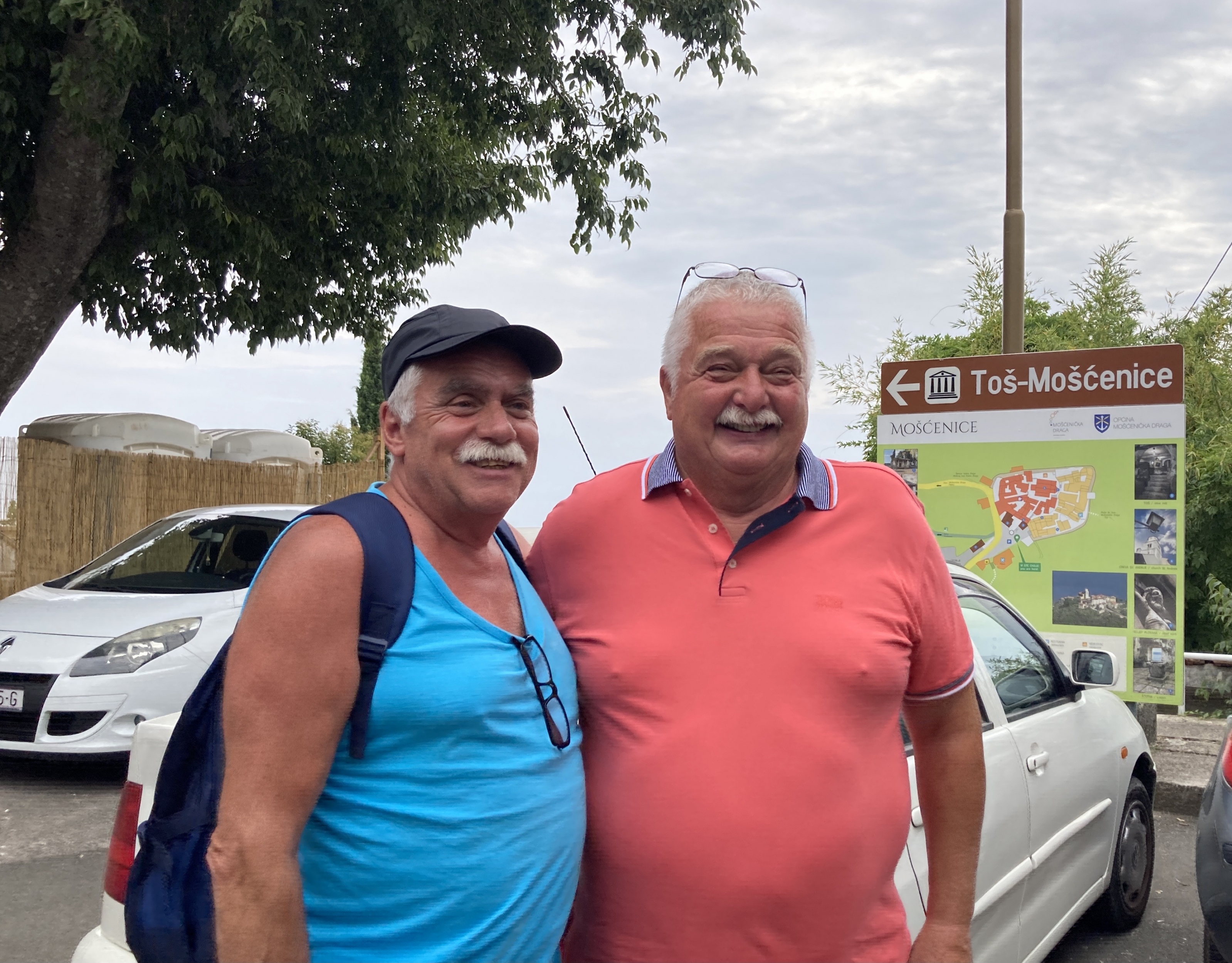 Heute überqueren wir die Halbinsel Richtung Ostküste von Istrien, zur Kvarner Bucht. Um 11 Uhr haben wir einen Termin beim Bürgermeister von Mošćenice. Sein Ruf eilt ihm voraus und wir sind gespannt auf dieses Unikum. Die Überraschung ist gross, als wir ihn im Dorfzentrum antreffen. Er sieht einem unserer Reiseteilnehmer zum Verwechseln ähnlich! Die Freude ist gegenseitig, sogar den gleichen Jahrgang haben die zwei Schnäuzigen.