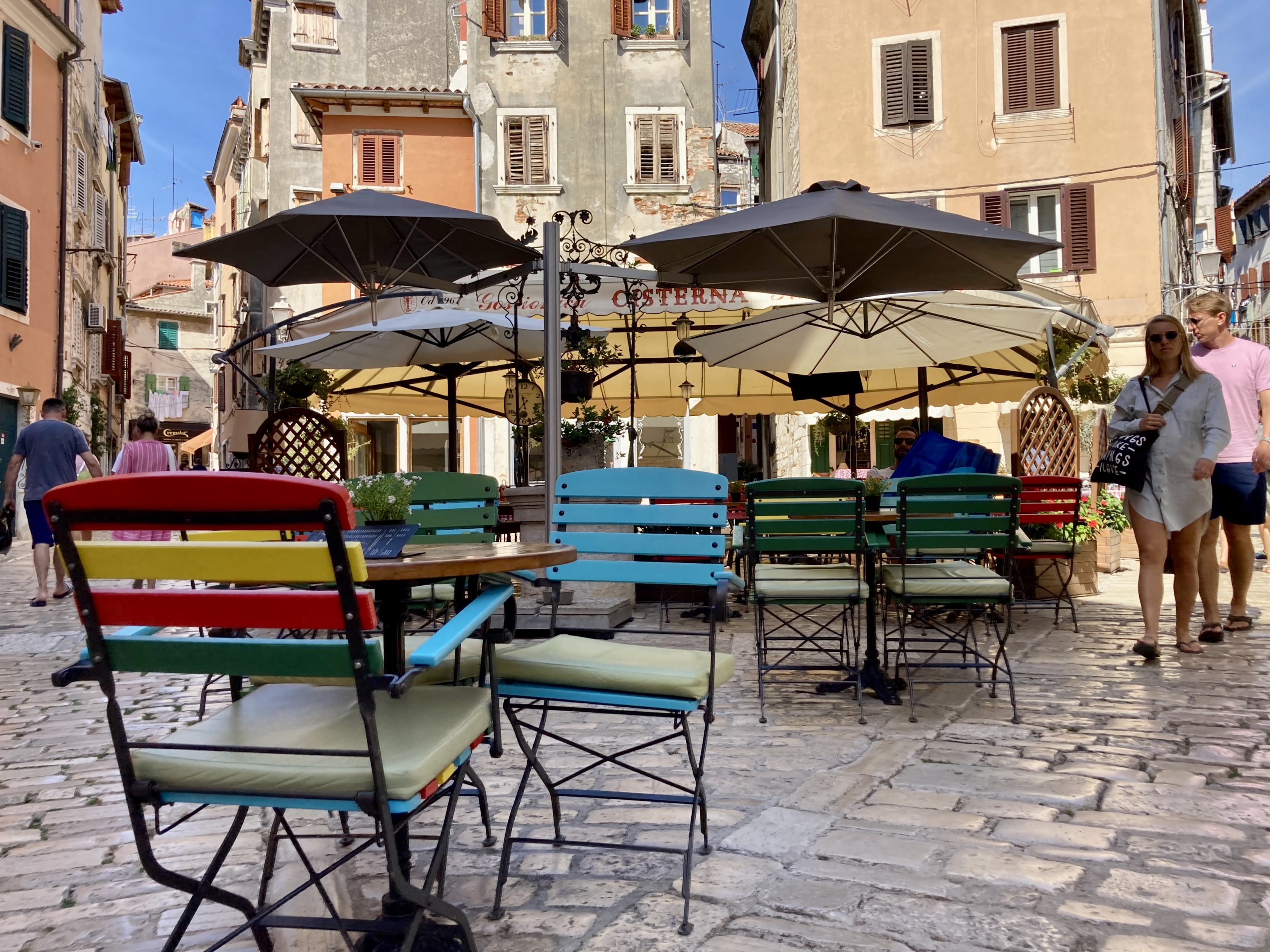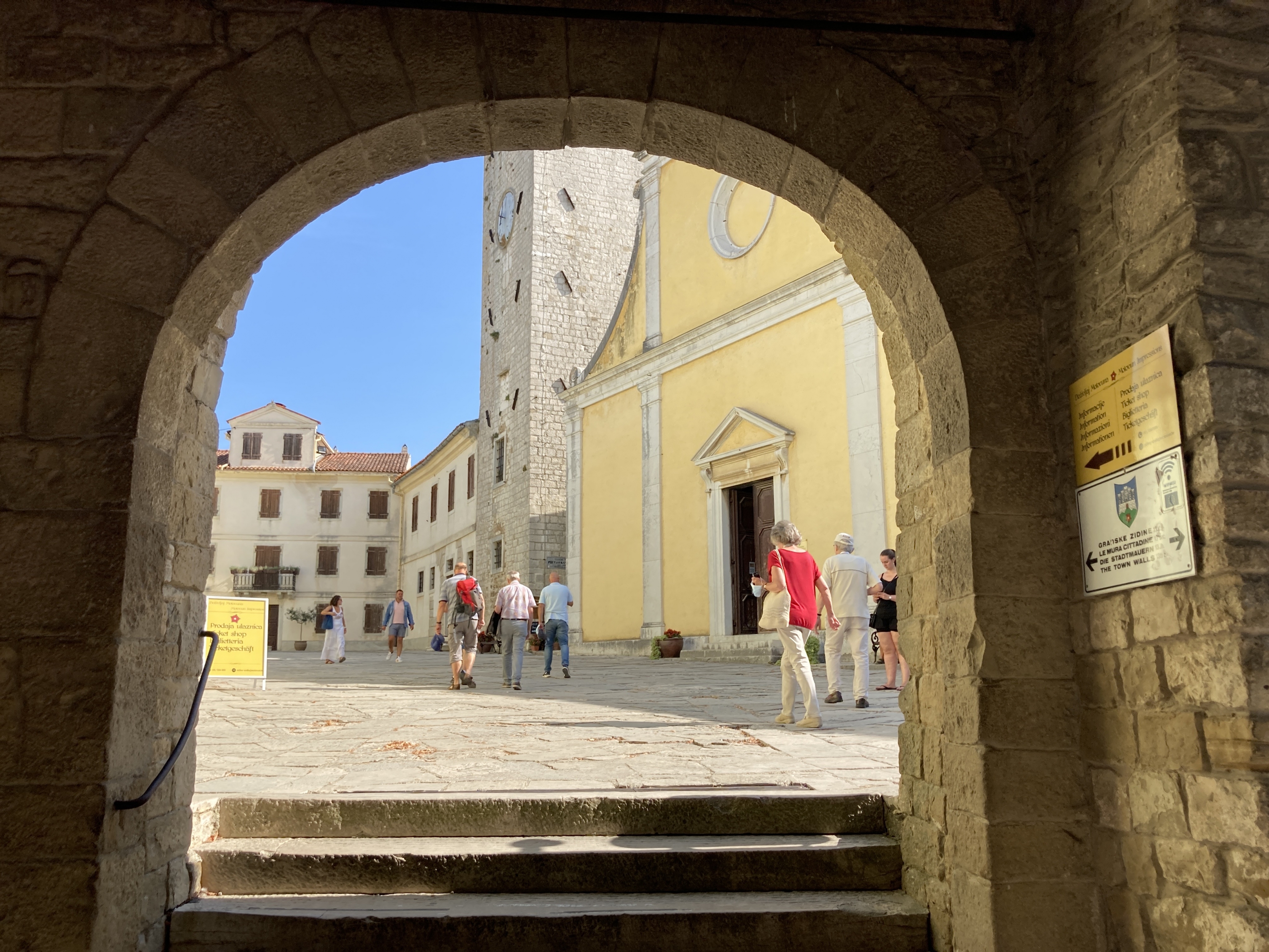 Anschliessend fährt uns Peter nach Poreć, wo uns Zoran wieder ins Zentrum des Ortes begleitet und uns auf die wichtigsten Sehenswürdigkeiten hinweist, wie zum Beispiel die Euphrasia Basilika (UNESCO Weltkulturerbe), das Rathaus und natürlich die Altstadt, wo wir den Schatten suchen. Es ist tatsächlich um die 30 Grad warm und wir können somit einen verspäteten Sommer geniessen, den wir in der Schweiz doch so vermisst haben.