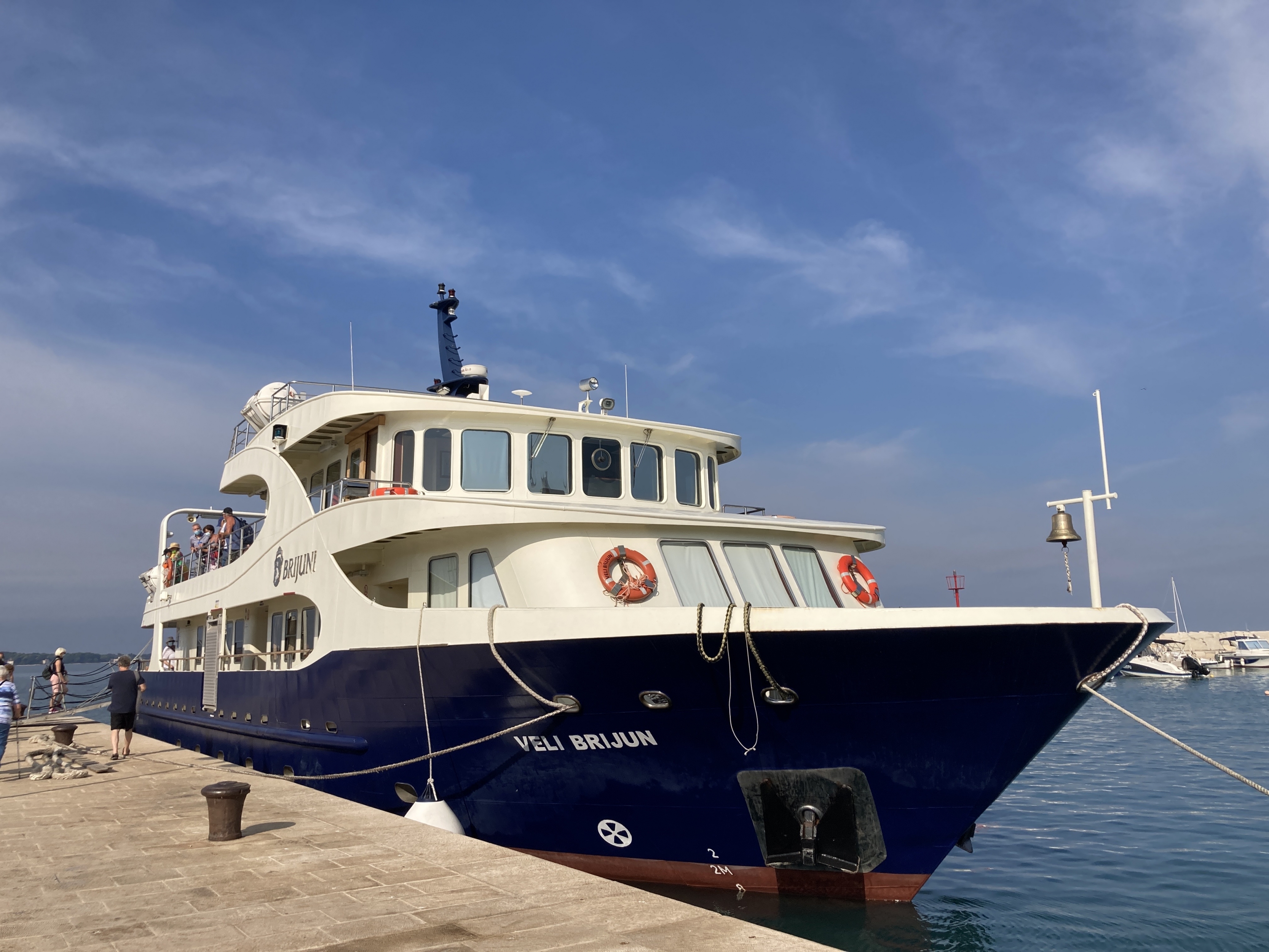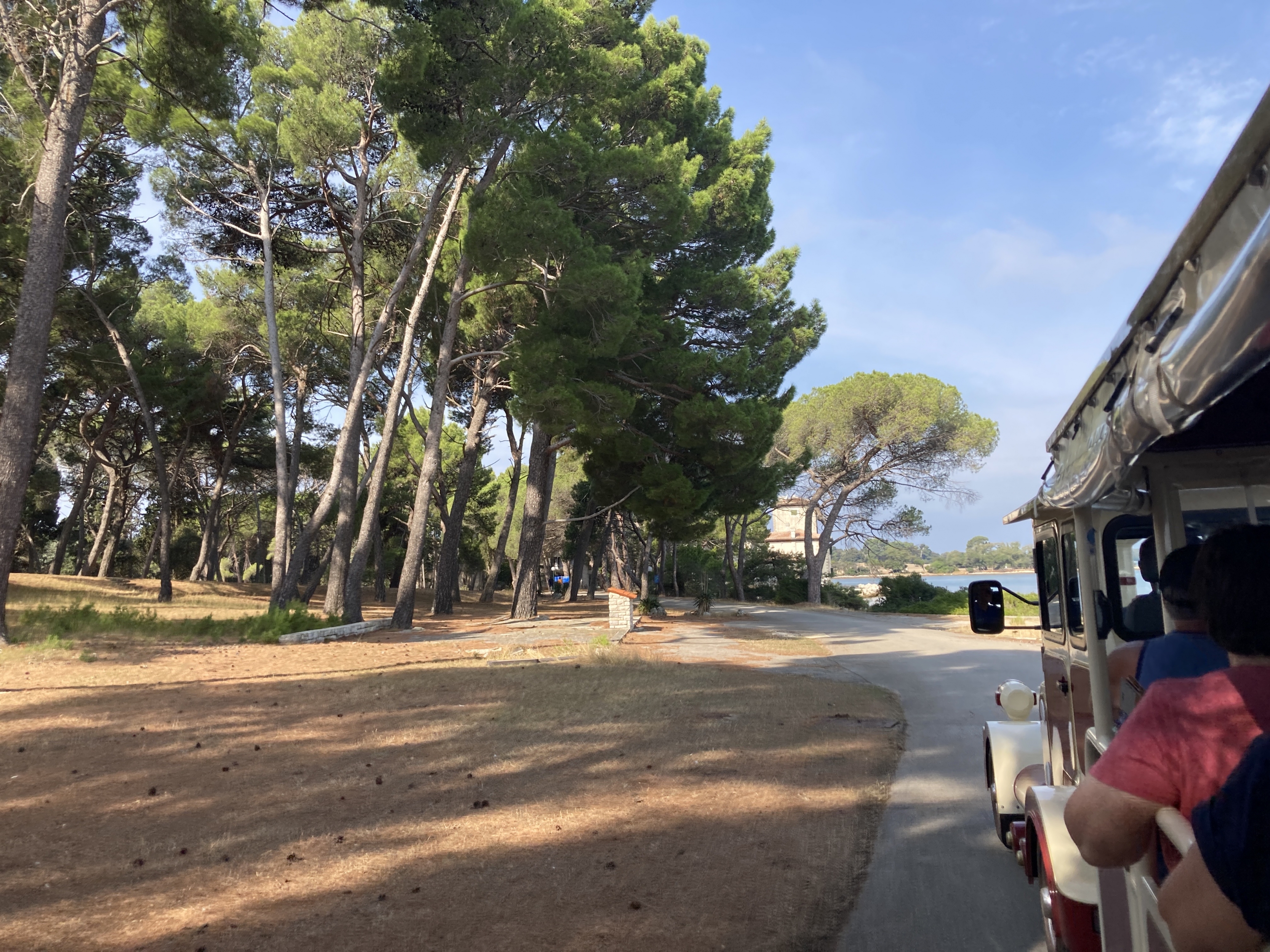 Den heutigen Tag verbringen wir im Süden von Istrien. Peter fährt mit uns bis nach Fazana. Dort geht es weiter mit der Fähre zur grössten der Brijuni Inseln. Diese Inselgruppe ist durch die langjährigen Aktivitäten von Josip Broz Tito, dem Präsidenten des ehemaligen Jugoslawien bekannt. Er residierte dort in einer stolzen Villa, wo er unzählige Staatsmänner, Aristokraten und Filmstars empfing. Seine Liebe zur Natur, zu Tieren und Kultur haben bis heute ihre Spuren auf diesen wunderschönen Inseln hinterlassen und Brijuni ist deshalb ein beliebtes Reiseziel für Touristen. Wir tuckern mit dem Inselzug, begleitet von der Inselführerin Sunja über den östlichen Teil der Insel, vorbei an mächtigen Pinien- und Olivenbäumen. Die Wiesen sind ausgetrocknet und als wir dann auch noch Zebras entdecken, fühlt man sich irgendwo nach Afrika versetzt. Wir bestaunen den wohl ältesten Olivenbaum am Mittelmeer, der mit seinen 1600 Jahren stolz und mächtig vor uns prangt. Eindrücklich diese Insel und voller Überraschungen.