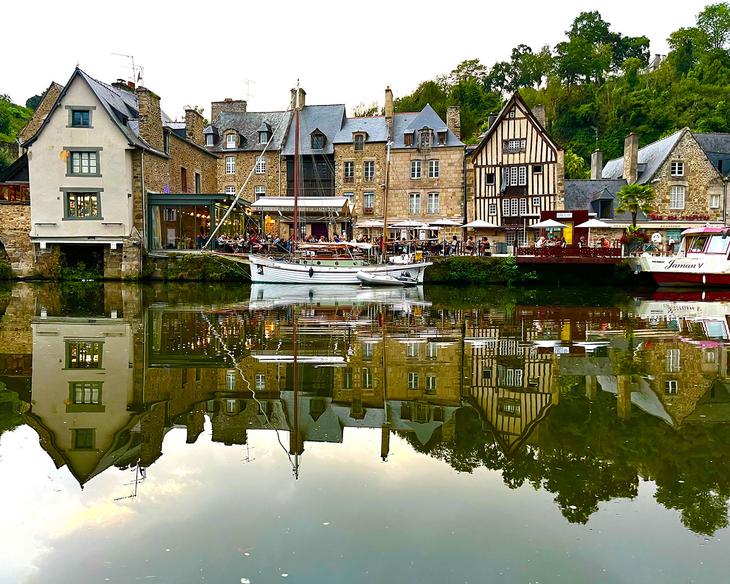Aber schon bald verlassen wir das Gelände, um ins südwestliche Dinan zu reisen. Die bezaubernde mittelalterliche Stadt am Fluss Rance ist für die nächsten drei Tage unser «Zuhause». Ich bin froh, wieder einmal den Koffer richtig auspacken zu können. Bevor wir das typisch französische Nachtessen im aussergewöhnlichen Hotelrestaurant serviert bekommen, schlendere ich kurz zum nahen Yachthafen und bestaune nicht nur die Boote und Schiffe, sondern auch die prächtigen Holzfassaden der Fachwerkhäuser am Wasser. Weiter reicht die Zeit nicht, sonst wäre ich gerne noch über die romantische Brücke zum anderen Ufer spaziert und hätte die gut erhaltene Stadtmauer fotografiert. Aber wir haben ja hoffentlich morgen noch Zeit.