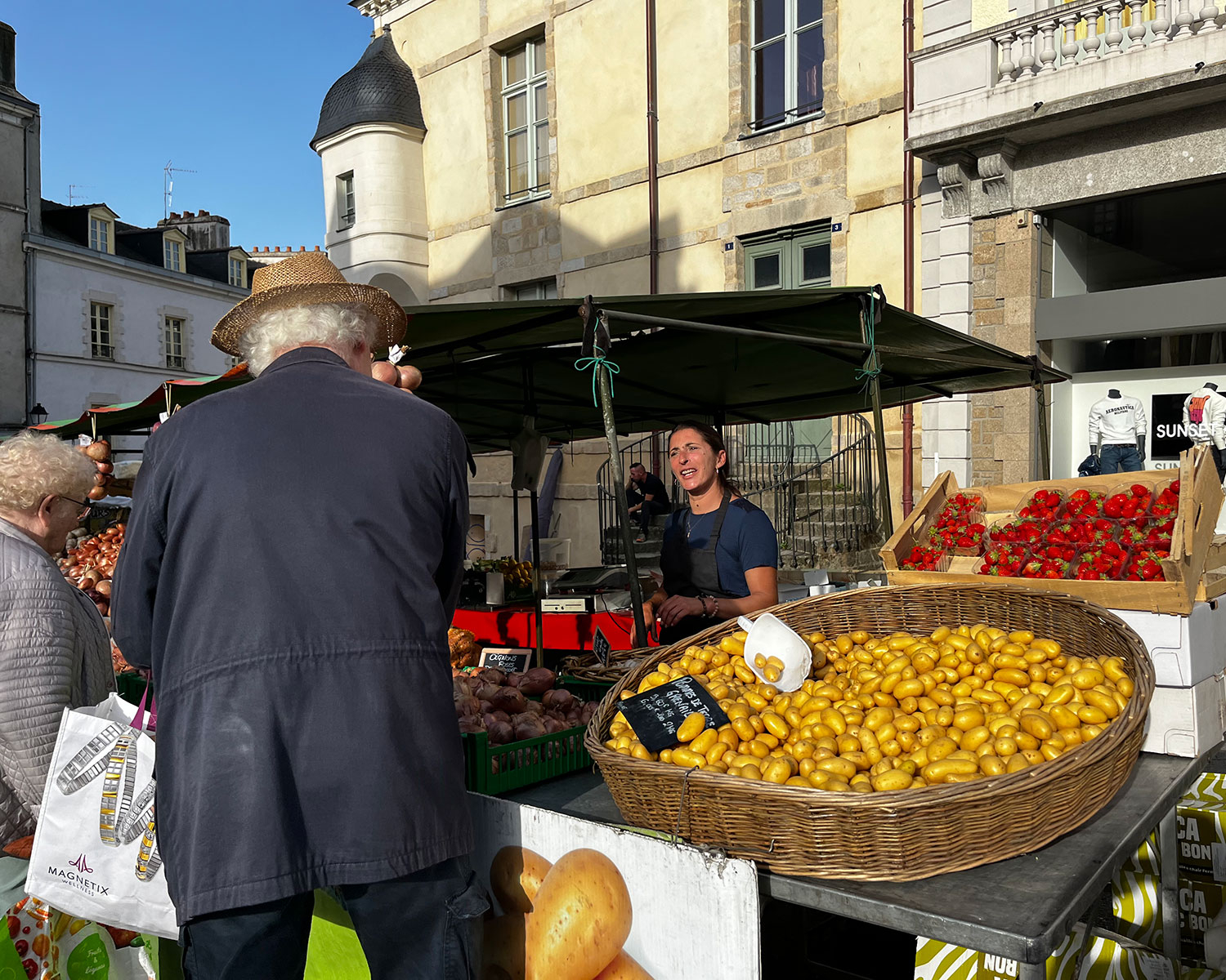 Dieser ist angenehm gekühlt und so lassen wir uns gerne sicher und bequem nach Dinan chauffieren. Das Abendessen ist in der Altstadt oben im rustikalen St. Louis reserviert. Dort verwöhnt uns die charmante Chefin mit lokalen feinen Speisen. Unkompliziert wird eine Auswahl an bereits geöffneten Weinflaschen auf die Tische verteilt. Gekühlt wird nichts und so trinken wir halt einfach etwas mehr und etwas schneller – so geht das.