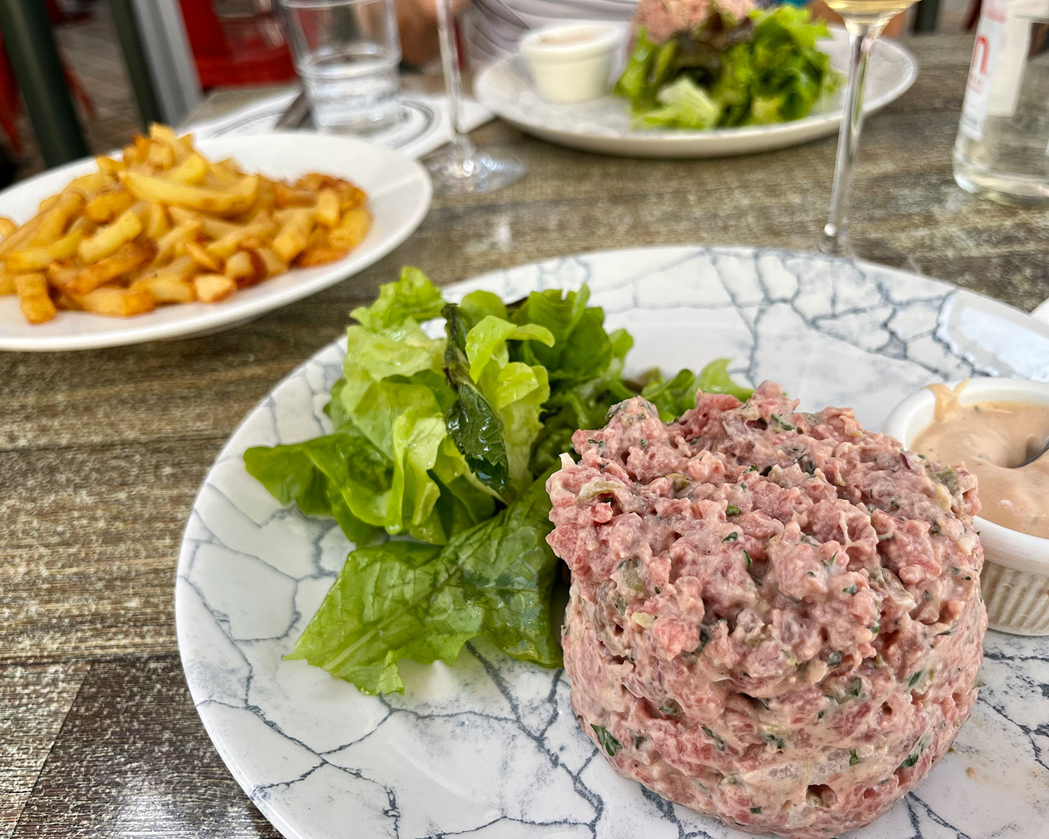 Heute reisen wir nach Orléans. Um 7 Uhr werden die Koffer mit einem kleinen Hotel-Caddy zum Bus transportiert. Dieser ist an der Hauptstrasse oberhalb der Hotelanlage parkiert. Die Fahrt geht durch das Loiretal, bekannt aufgrund der unzähligen Schlösser und Herrenhäusern. Leider sind wir auf der Schnellstrasse unterwegs und zu weit von ihnen entfernt. Aber durch Katharina erfahren wir einige historische Eckdaten und es würde mich definitiv reizen, diese Prunkbauten aus vergangenen Zeiten einmal vor Ort anzuschauen. Die grosse Pause verbringen wir in Amboise; welch’ ein schmuckes Städtchen direkt an der Loire. Über der Altstadt thront das mächtige Schloss. So nutzen einige die Zeit für einen Besuch beim Schloss und dessen Park und die anderen – zu denen natürlich ich gehöre – um etwas Feines zu essen. Das bestellte Tatar ist einfach himmlisch und das junge Personal aufmerksam und sehr sympathisch.