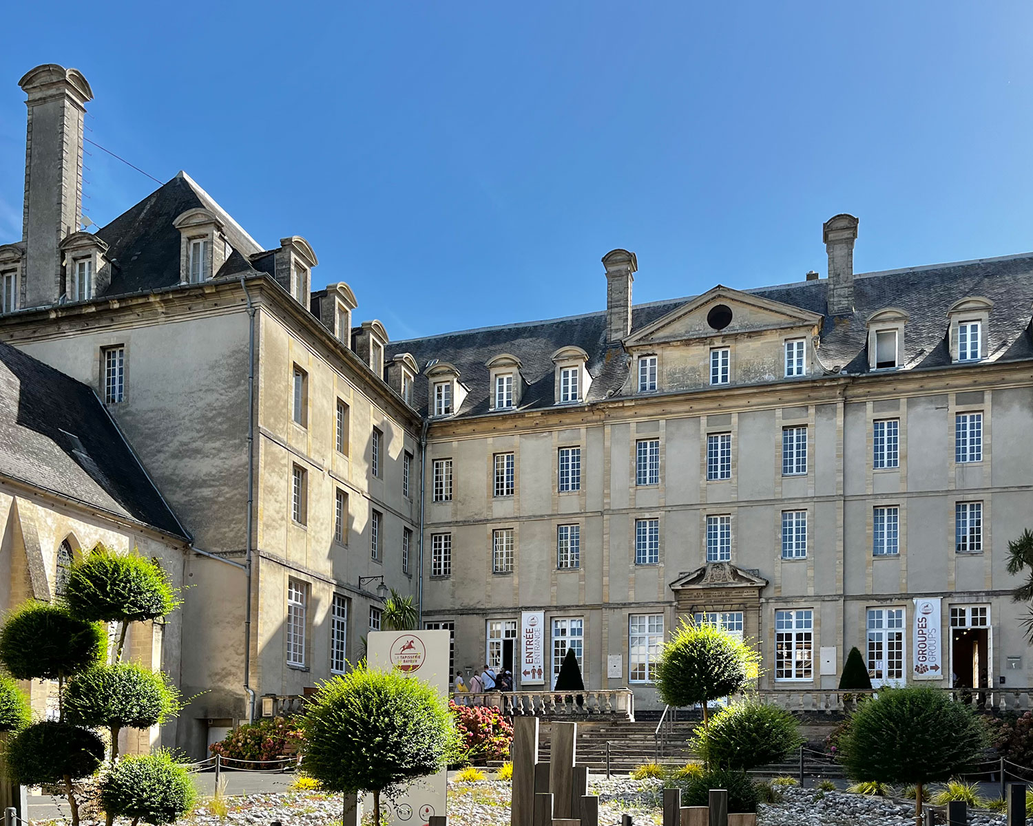 Colleville-sur-Mer im Departement Calvados ist unsere nächste Station in der Normandie. Hier ist der riesige Soldatenfriedhof Omaha Beach mit den langen Reihen Kreuzen aus weissem Marmor. Er erinnert an die Opfer des D-Days an diesem Küstenabschnitt im Zweiten Weltkrieg , wo die Amerikaner ihre grössten Verluste zu beklagen hatten: über 4000 Soldaten verloren ihr Leben. In Arromanches, ein paar Ortschaften weiter, haben wir um 16 Uhr einen Termin im Musée du Déparchement. Das moderne Gebäude wurde erst dieses Jahr eröffnet; die Kriegs-Ausstellung überrascht und erschüttert gleichermassen. Mit Audio-Guides wird man von Posten zu Posten gelotst. Wir sind tief beeindruckt und sind froh, noch etwas Zeit zu haben, um wieder auf andere Gedanken zu kommen. So setzen wir uns ein Weilchen ans nahe Meer oder geniessen zum Abschluss einen hiesigen Cidre. Unser Hotel ausserhalb von Caen ist verkehrstechnisch gut gelegen. Dort logieren wir wiederum nur eine Nacht.