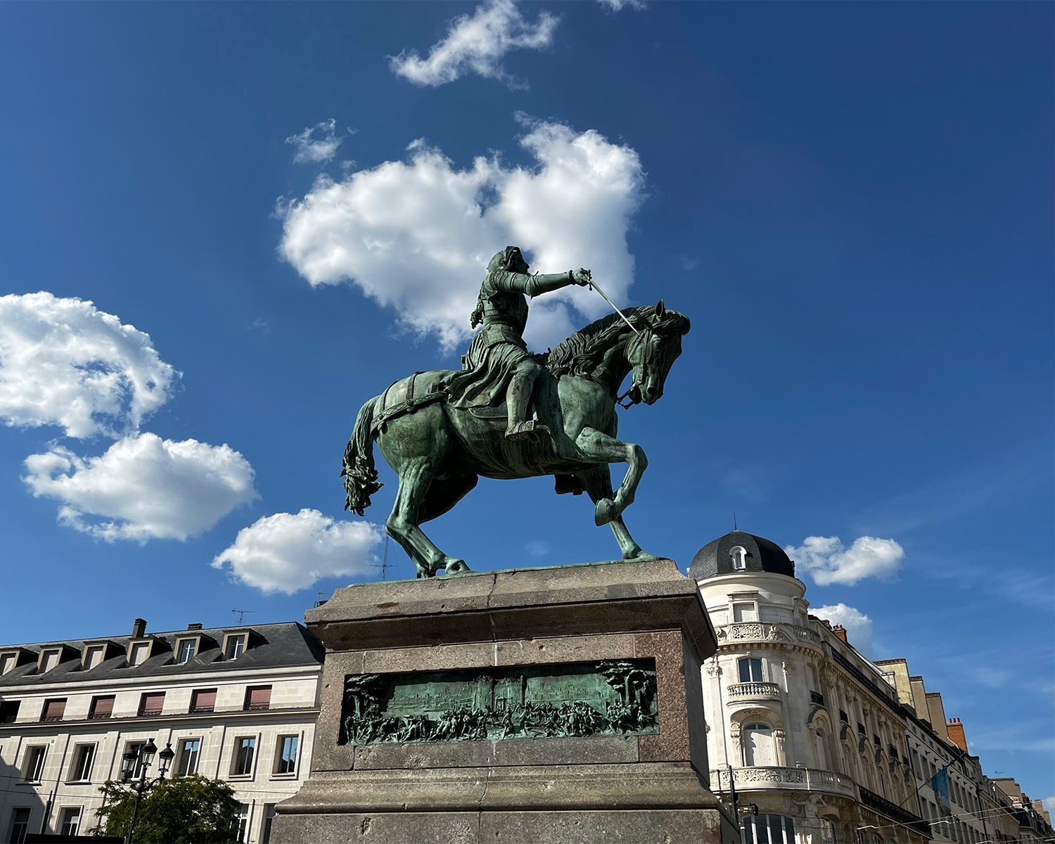 Der Einkaufsbummel fällt kürzer aus als gewohnt und alle sitzen überpünktlich im kühlen Bus. Wir fahren noch einmal rund 100 km ostwärts und erreichen Orléans um 15.30 Uhr. Eine elegante ältere Dame erwartet uns bereits. Genevieve zeigt uns die Stadt und führt uns durch schattige Gassen und Wege zur Cathedral Saint Croix. Gespannt lauschen wir ihren Erläuterungen zu all den Wappen, Skulpturen und den farbenprächtigen Kirchenfenstern, angefertigt in ganz verschiedenen Jahrhunderten. Am meisten interessiert uns aber der Mythos um Jeanne d’Arc, der Jungfrau von Orléans. Sie wird als französische Nationalheldin und Heilige verehrt. Der Rundgang durch die Altstadt endet beim Place du Matroi, wo die Reiterstatue mit Jeanne d’Arc bewundert werden kann. Ziemlich verschwitzt und ausgelaugt kommen wir kurz nach sechs Uhr im Hotel ausserhalb von Orléans an. Auch frisch geduscht spüren wir die Müdigkeit; die andauernde Hitze der letzten Tage hat uns wahrlich etwas zugesetzt. Früh gibt es Feierabend, denn morgen nehmen wir die Heimreise unter die Räder.