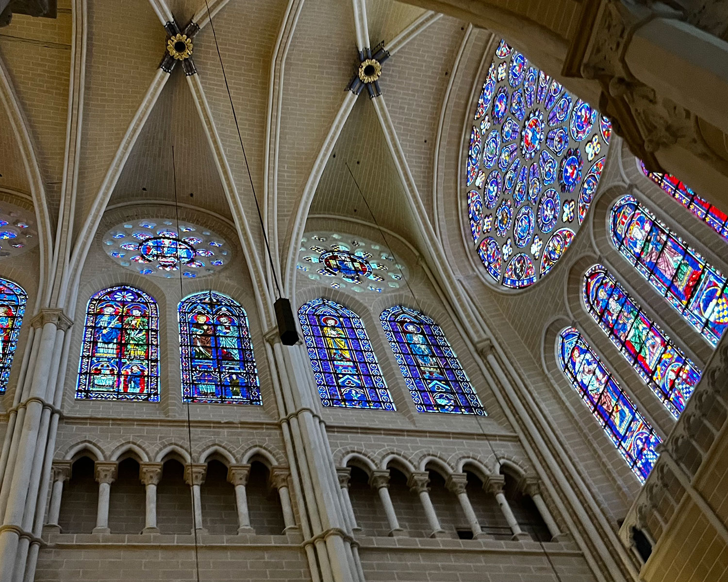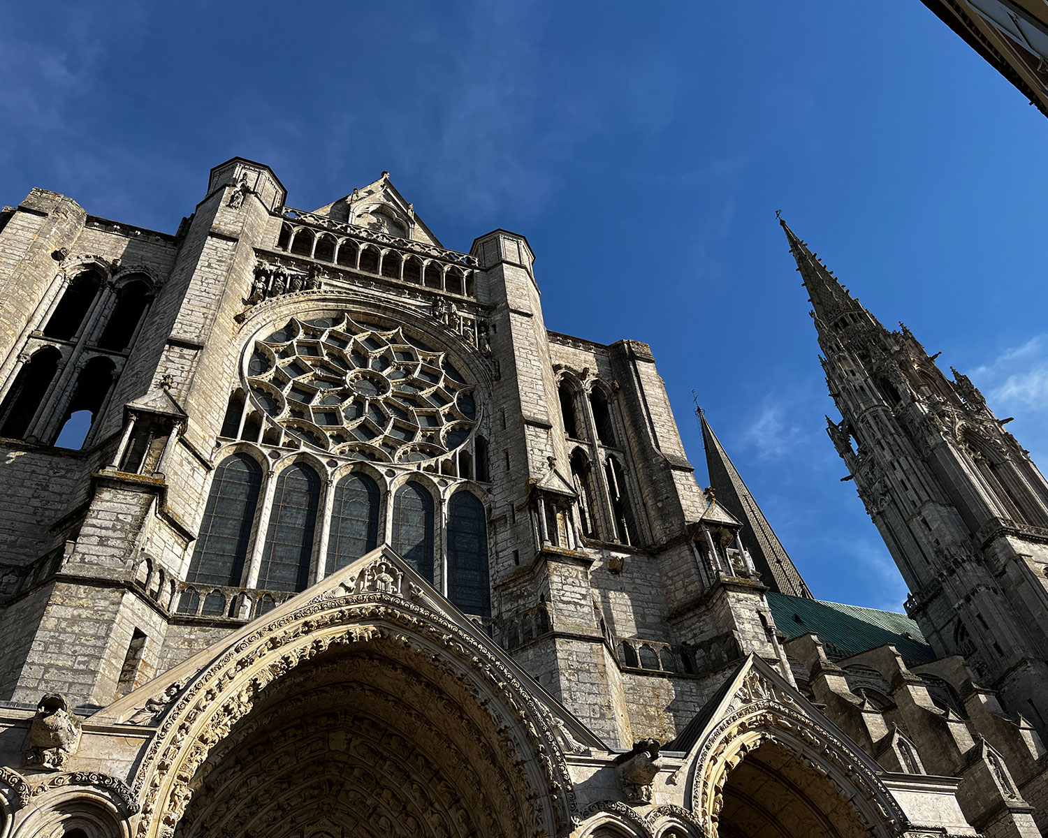 Unsere Anreise über Basel, Mulhouse nach Chartres ist kurzweilig. Unsere Chauffeuse Katharina berichtet Spannendes über Geografie, Geschichte und Wirtschaft – exakt was man einfach wissen sollte. Rebsorten, Schlösser, Geschichten über Könige und sonstige Schlossherren und Schlossdamen, alles ist dabei. Wir fahren durch die Regionen Grand Est (Elsass, Lothringen und Champagne-Ardenne seit 2016 vereint) und Ile de France nach Chartres. Dort haben wir fast eine Stunde Zeit um die weltbekannte Kathedrale zu besuchen. Deren Fenster mit den unverwechselbaren blauen Gläsern zaubern je nach Lichteinfall ein spektakuläres Licht auf den Boden. Obwohl wir meistens nur im Bus gesessen haben, freuen wir uns, am Abend unsere Zimmer im Hotel am Stadtrand beziehen zu können. Der Apéro um 19.30 Uhr mit anschliessendem Nachtessen findet in gemütlicher Atmosphäre statt. Nachtruhe ist bald einmal, denn der morgige Tag verspricht ein volles Programm.