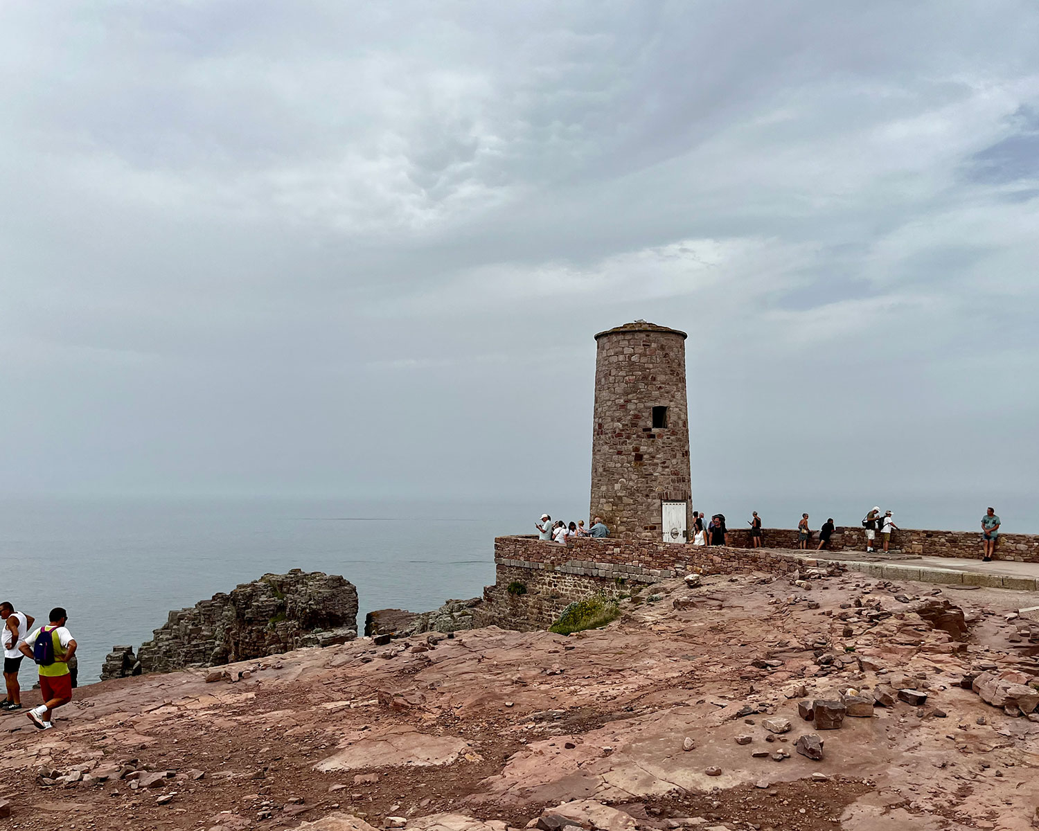 Bevor wir wieder zurück zum Hotel fahren, zeigt uns Nathalie das Cap Fréhel, westlich von Saint-Malo – dieser Zipfel mit der riesigen Heidelandschaft wird hier auch gerne als Ende der Welt bezeichnet, da es der nördlichste Punkt der felsigen Küste ist. Der grosse Leuchtturm wird zurzeit renoviert, darin befindet sich sonst eine permanente Ausstellung. Nach einem kurzen Spaziergang zum Aussichtspunkt ganz vorne an den Klippen, kehren wir zurück zum Bus.