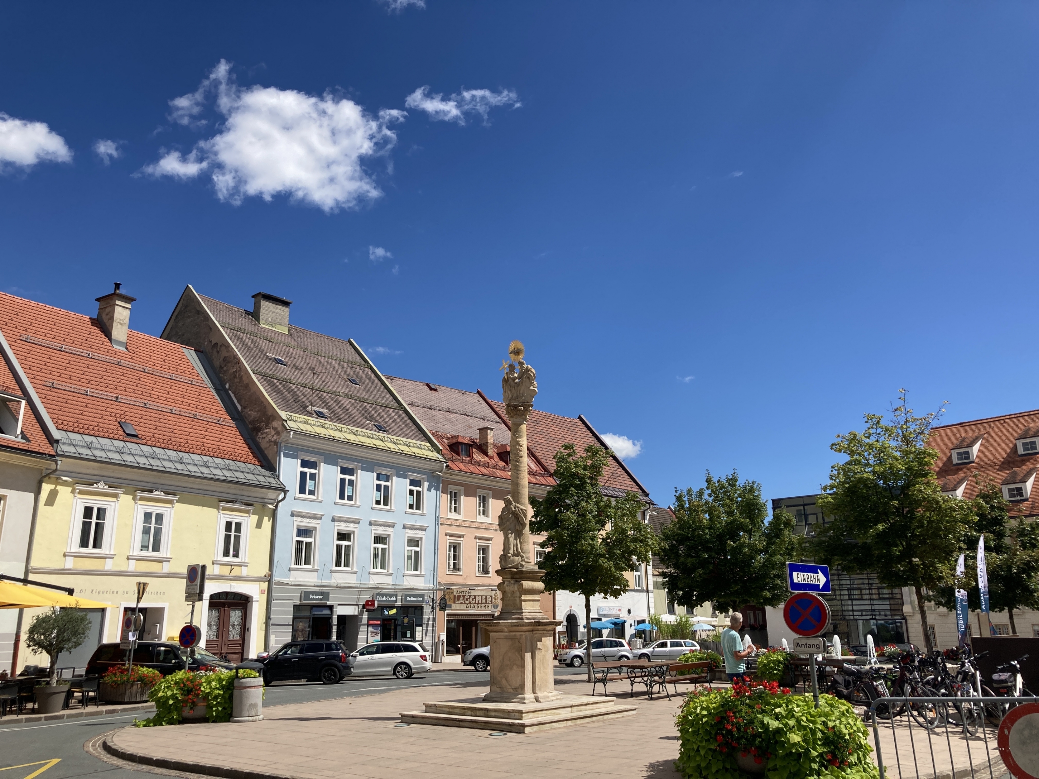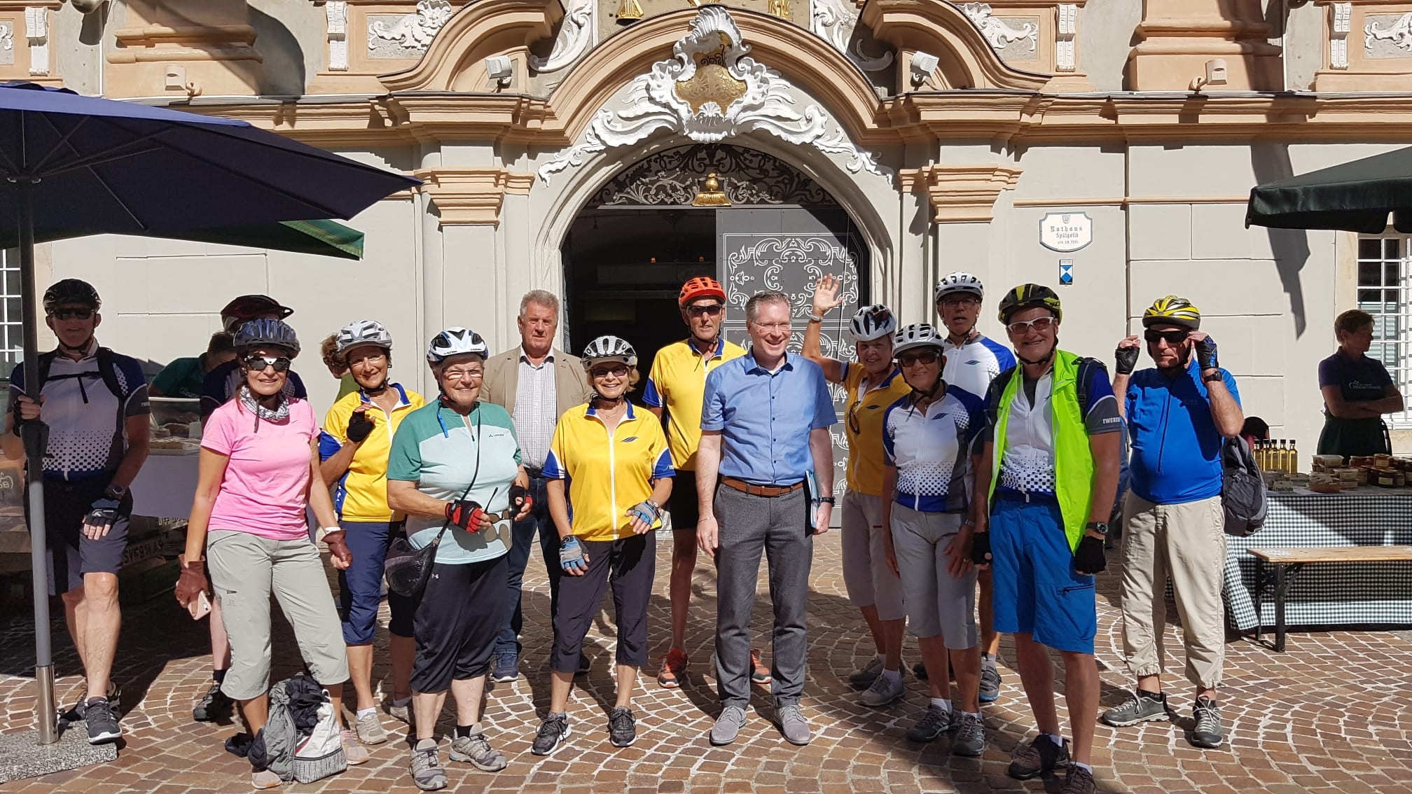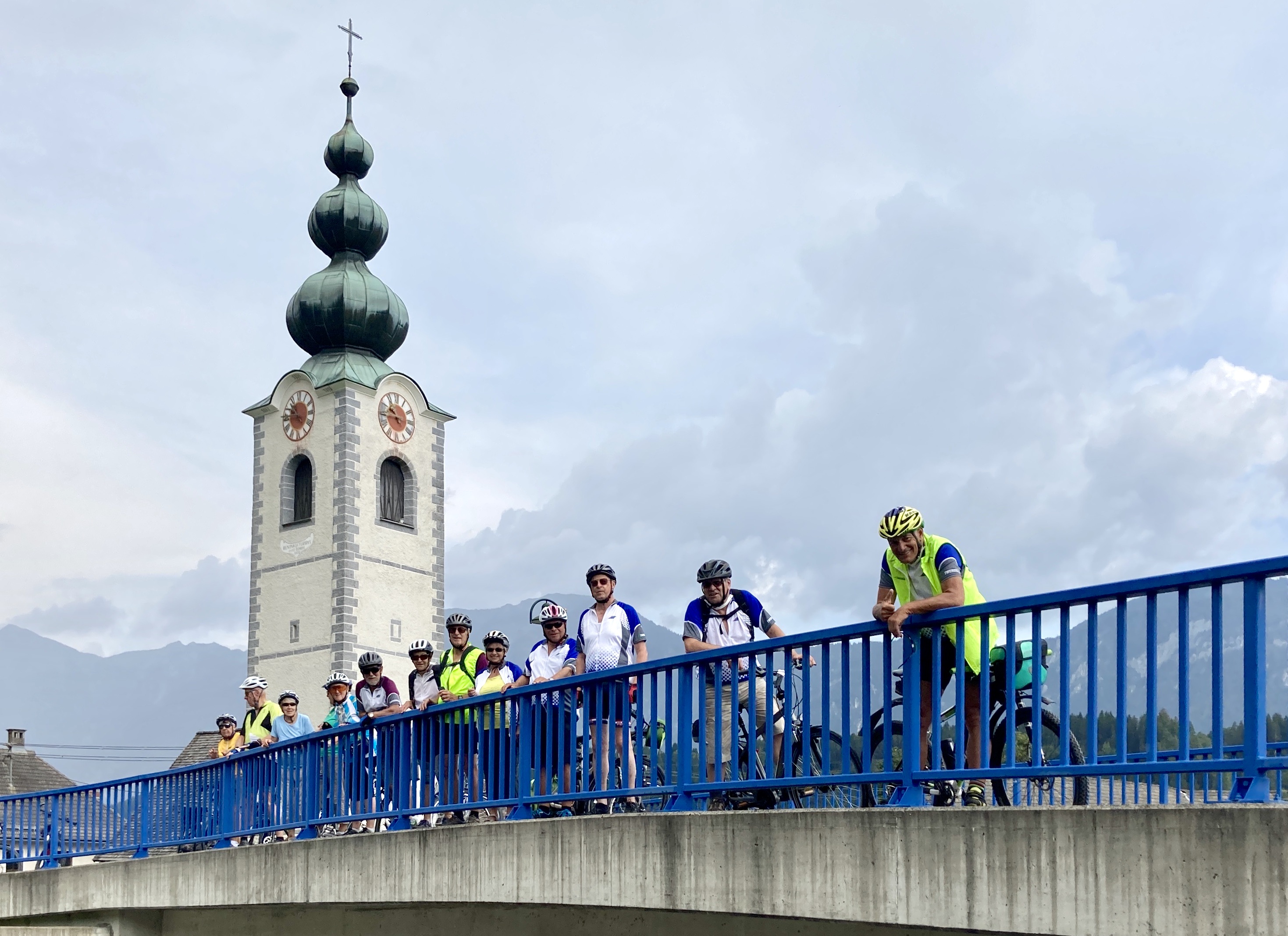 Mit Chauffeur Lothar fahren wir wieder pünktlich um 8.30 Uhr los. In Velden am Wörthersee darf Franz erleichtert sein repariertes Bike abholen und so geht die Busfahrt weiter nach St. Veit. Dort werden alle Räder ausgeladen. Unser Gefährt sorgt dort für Aufregung: ein Mitarbeiter aus dem Rathaus rennt aufgeregt um uns herum und schiesst mit seinem Handy Fotos. Was zur Folge hat, dass die eine Velogruppe von uns noch ins Rathaus bestellt wird. Dort werden die Twerenboldner vom Bürgermeister höchstpersönlich empfangen, sogar von einer Dame fotografisch festgehalten. Welch‘ eine Ehre. Die Velotour geht gemütlich der Glan entlang. Dieser Fluss ist eher ein Bach und somit auch besonders romantisch. Im reizenden Städtchen Feldkirchen gibt es eine Mittagpause, die jeder individuell gestaltet. In der Gartenwirtschaft brennt uns die Sonne auf den Rücken, die Wespen schwirren um unsere Köpfe und unseren Imbiss und so sind wir ganz froh, wieder auf das Velo steigen zu dürfen. Von Weitem sehen wir schon den dritten Kärntner See: den Ossiachersee. Am langgezogenen See fahren wir nun Richtung Villach, wo das letzte Teilstück hinauf zum Hotel auch per Bus gemacht werden darf. Die meisten bleiben aber unserem Joe treu und radeln auch noch die letzten 6 km mit ihm. So haben wir auch heute wieder 60 km geschafft.