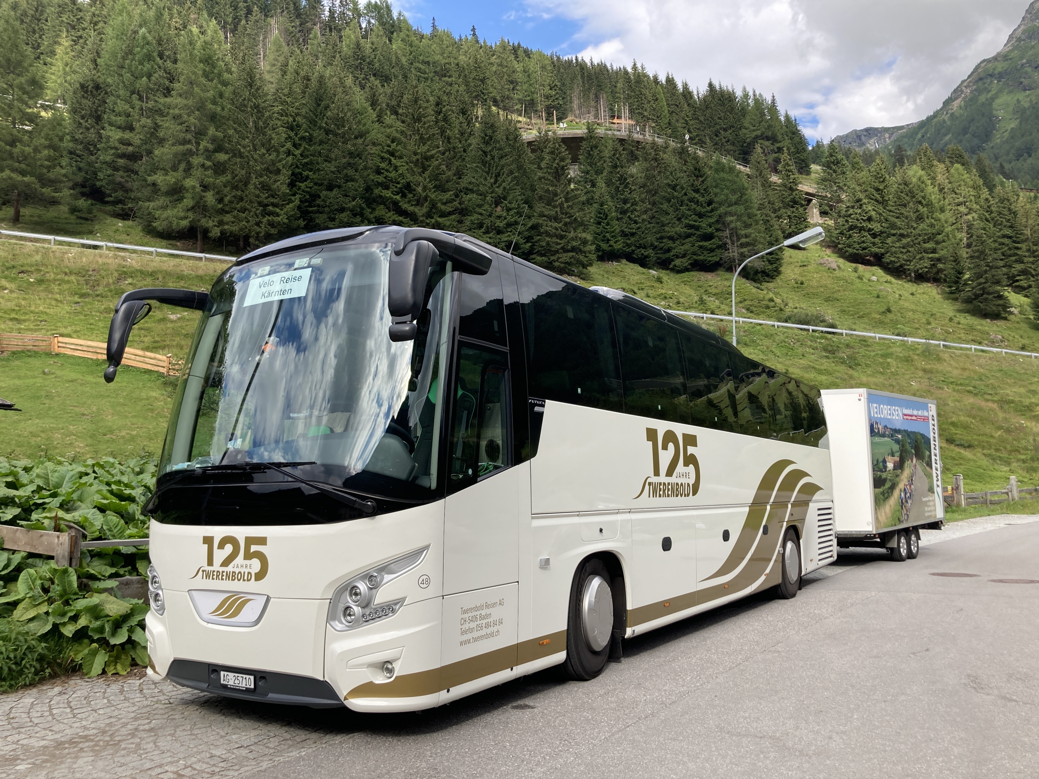 Heimfahrt! Heute heisst es Abschied nehmen; von unseren herzlichen Gastgebern der Hotel-Pension Melcher, der Region Kärnten und vor allem von meinen wunderbaren Reisebegleitern. Bei den Veloreisen spürt man stets einen familiären, kollegialen Spirit. Die Stimmung ist etwas wehmütig, wenn man sich auch auf das Zuhause freut. Dort gibt es dann viel zu erzählen. Während der rund 10-stündigen Busfahrt mit den üblichen Ruhepausen des Chauffeurs und Biopausen der Gäste, gibt Roberto nochmals einen kurzen Rückblick auf die kurzweilige Woche. Die letzten Adressen oder Handynummern werden noch ausgetauscht, bevor sich alle drei Leiter und auch Chauffeur Lothar mit persönlichen Worten am Mikrophon verabschieden.. Die Fahrt über das Südtirol und den Brennerpass verläuft ziemlich flüssig und wir kommen frühzeitig an unseren Einsteigeorten an. «Pfiat euch!»