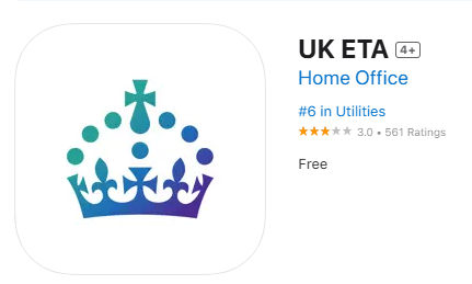 Beantragung mit der UK ETA App, die aus dem Google Play oder Apple App Store heruntergeladen werden kann.