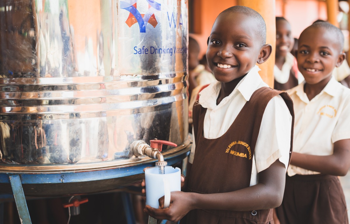 Sauberes Trinkwasser für Schulen und Haushalten in Uganda.